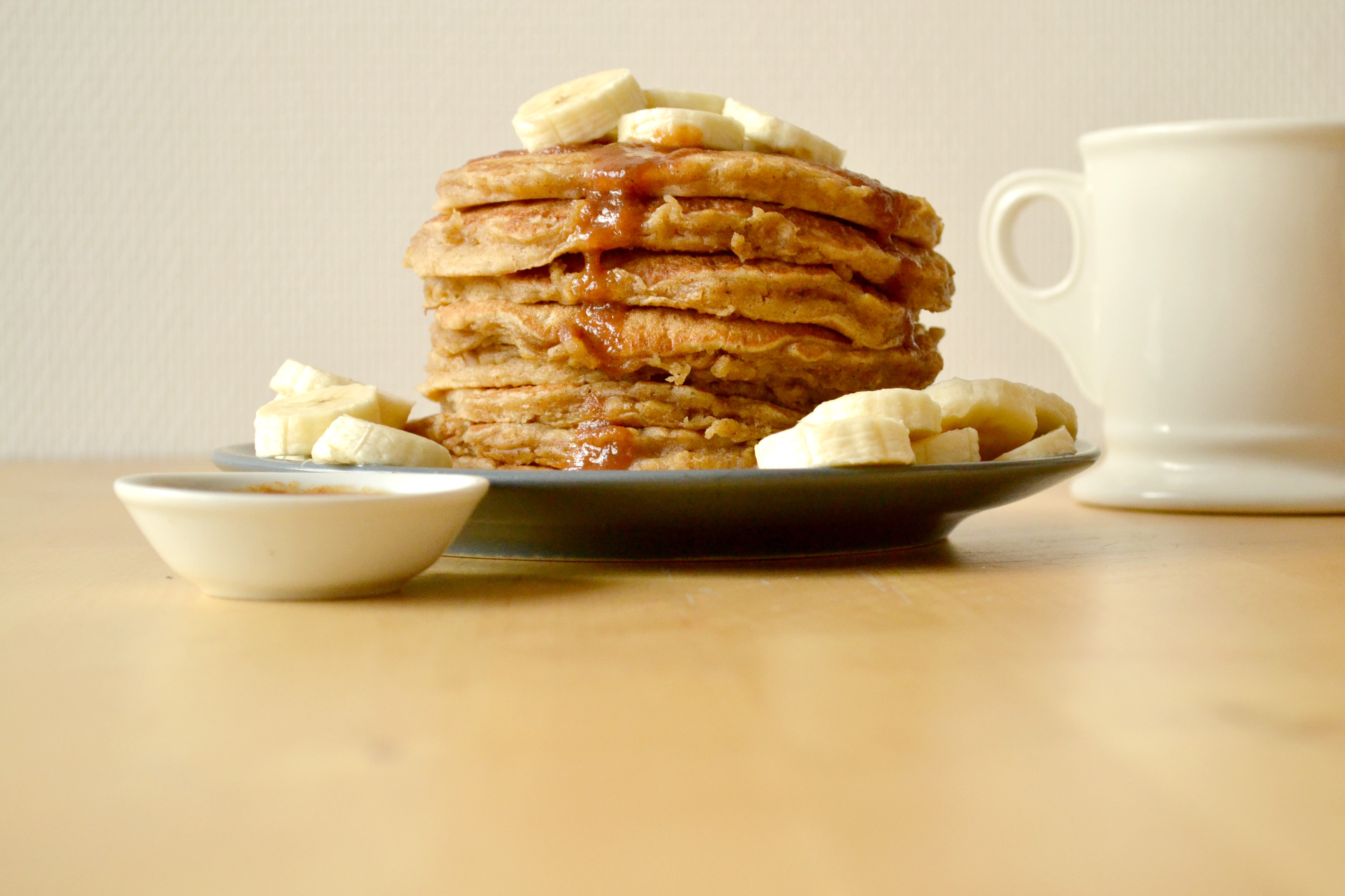Pour le dressage : Napper simplement votre tour de pancakes de ce doux caramel et y ajouter n’importe quel fruit frais (des bananes par exemple !).