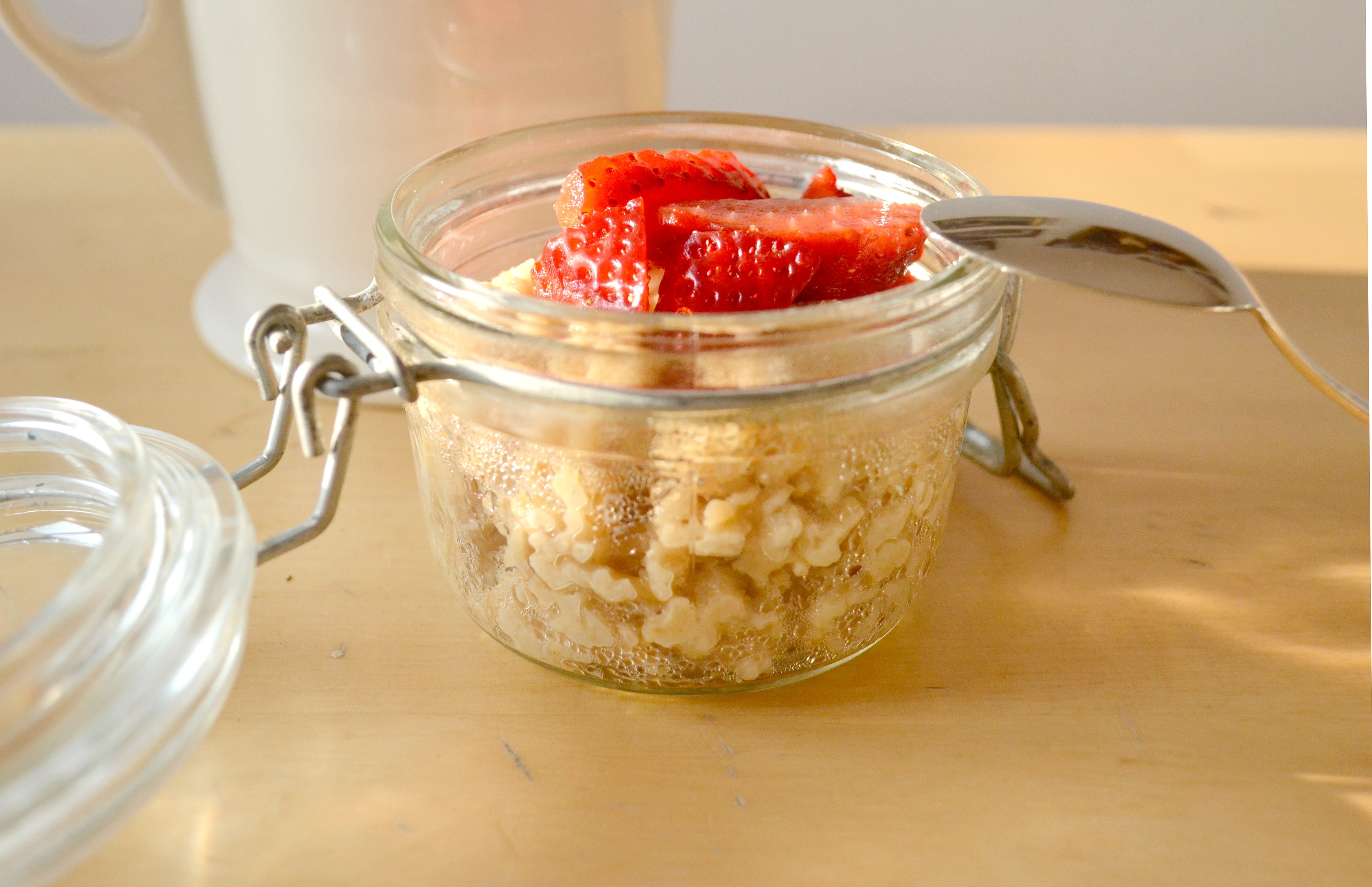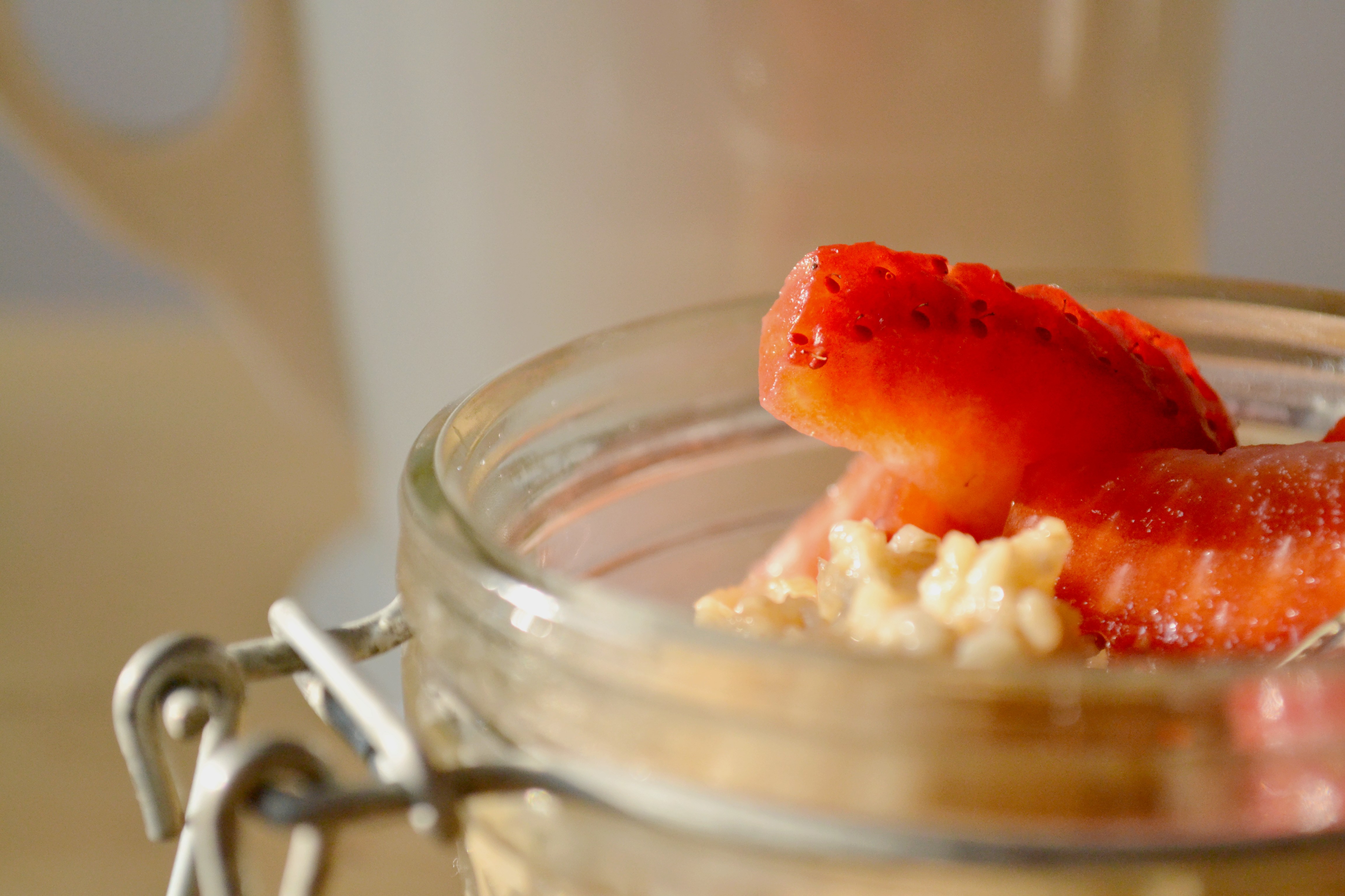 NB : Il existe de nombreuses autres recettes de porridge : vous pouvez par exemple remplacer la confiture de lait par une cuillère à soupe de miel et y ajouter de la cannelle (autre version que j’affectionne), remplacer les fraises par n’importe quel autre fruit frais (bananes, kiwis, poires, framboises …). Il est aussi possible d’y verser du chocolat en poudre ou en pépites, d’y ajouter des fruits secs, du sucre roux ou même de l’aromatiser à la cardamome …. Bref, on peut varier les versions à l’infini !