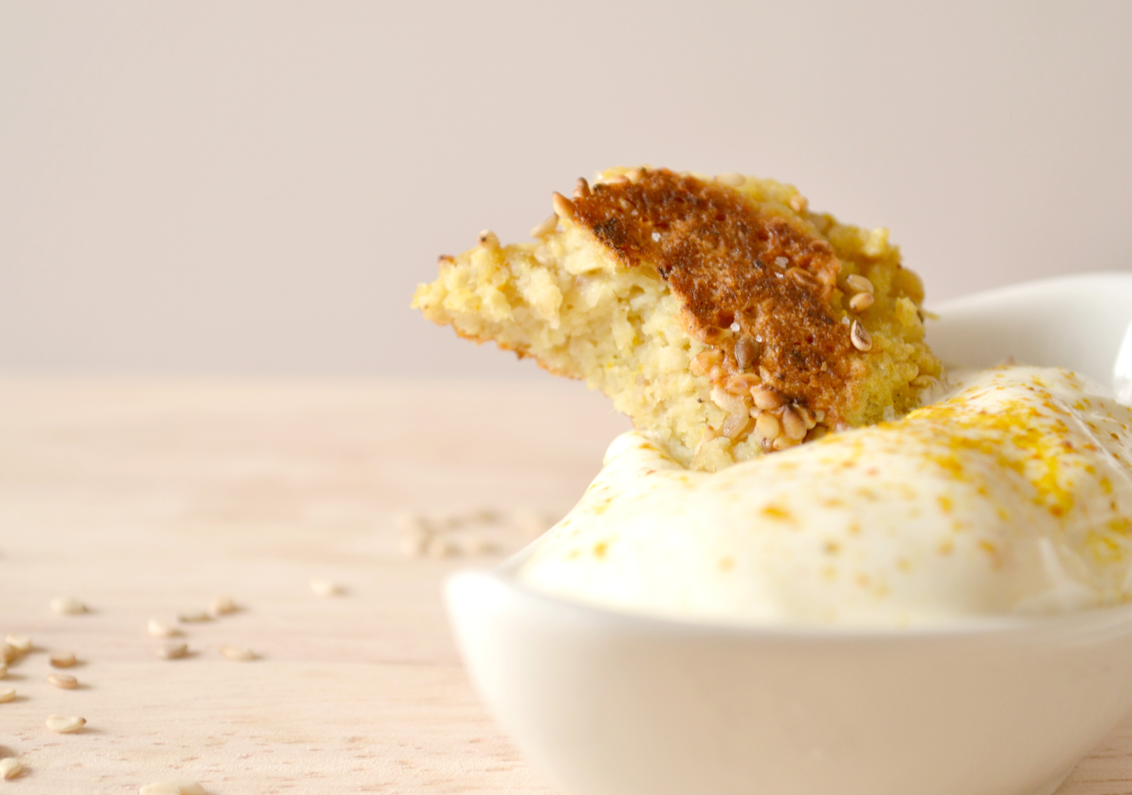 Et quand je dis que c’est ultra simple, ce n’est pas un euphémisme ! C’est encore plus simple que ça ! Tout ce dont on a besoin, c’est d’un mixeur et d’une poêle. Finis les nuggets trop gras, imbibés d’huile, mous ou trop élastiques … Ceux là sont super croustillants et vraiment moelleux à l’intérieur. Et avec le sésame, les épices et accompagnés d’une sauce au yaourt et au curry, c’est vraiment (trop) bon … ♥