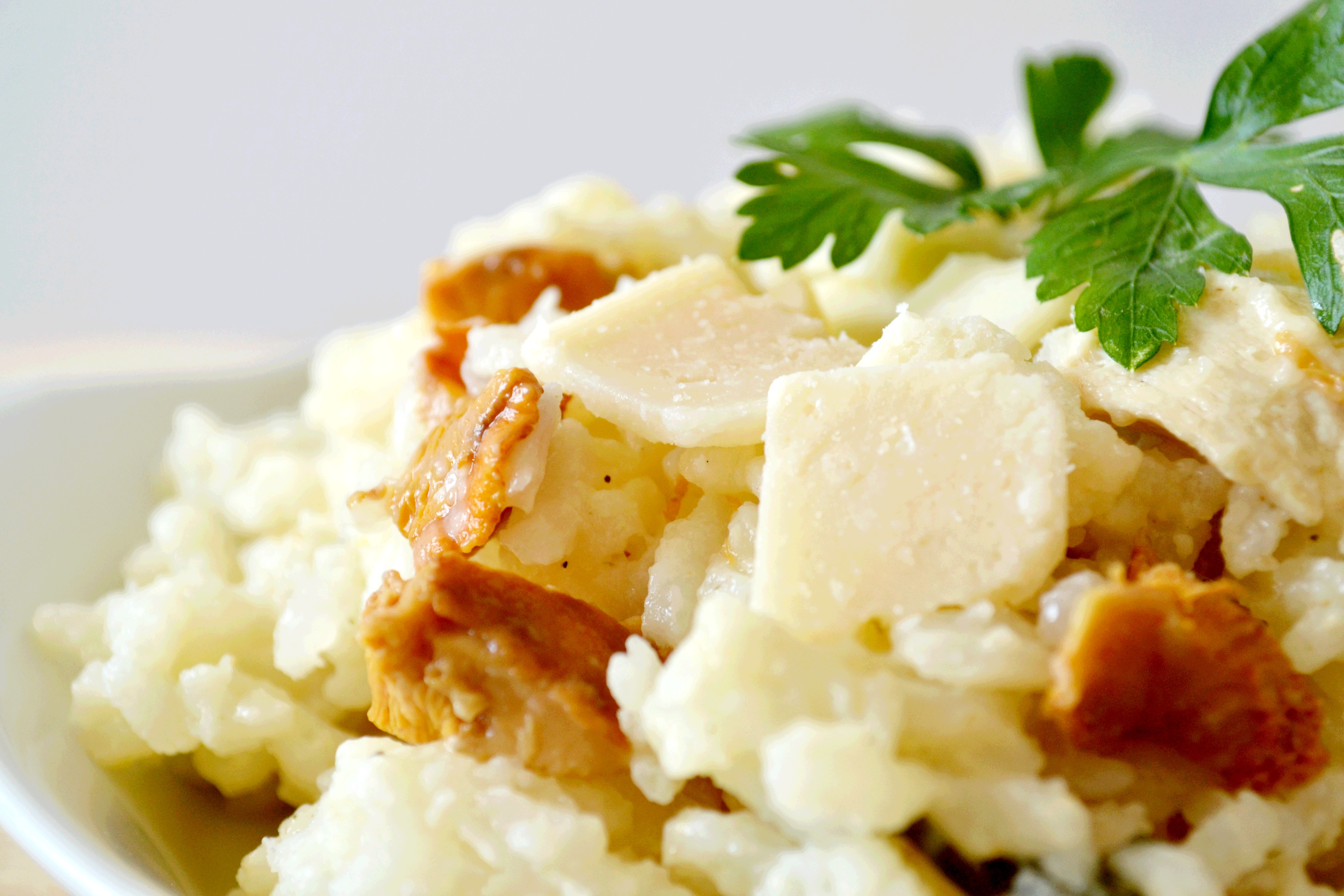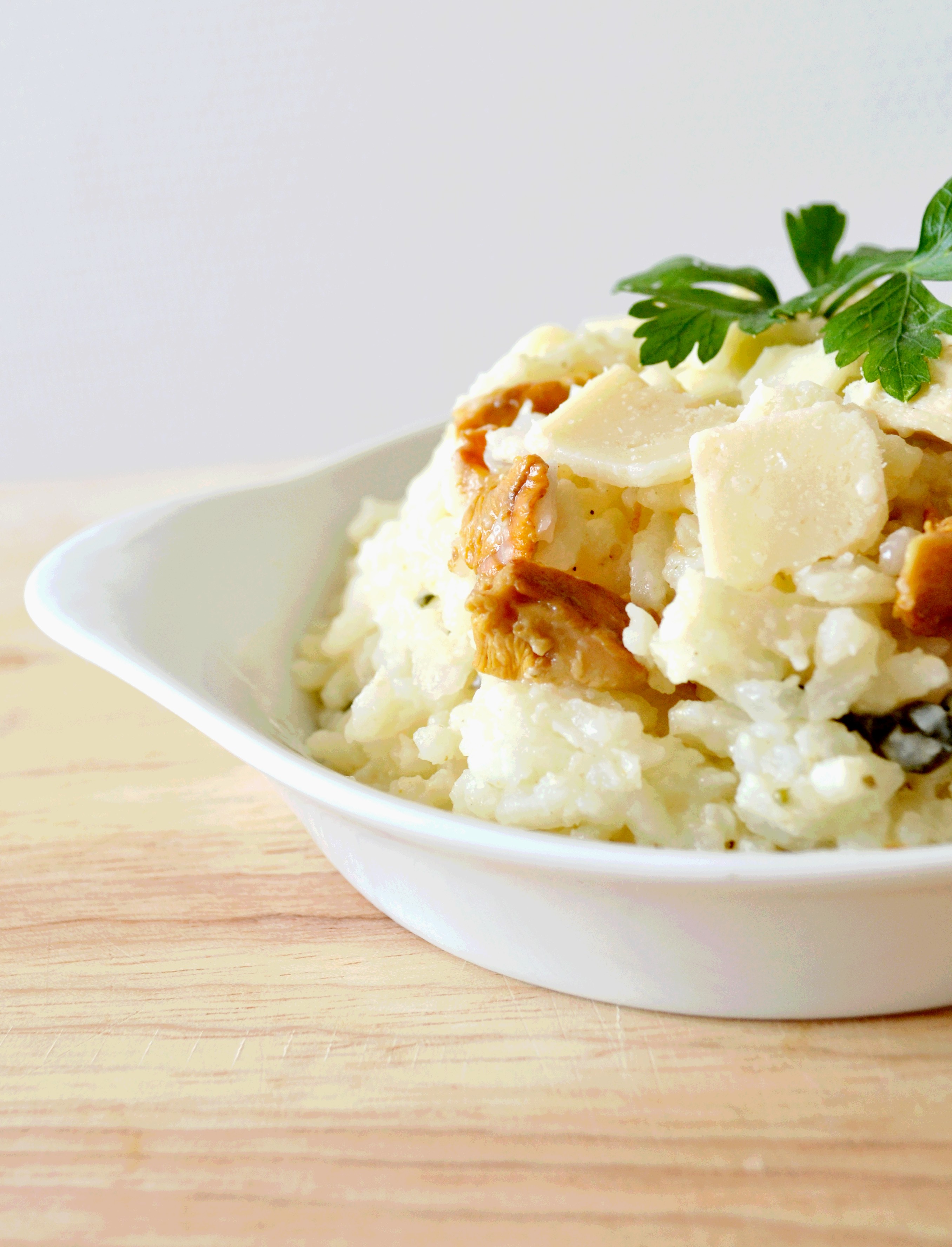 Depuis toujours, l’automne est ma saison préférée. Au même rythme que la Nature, c’est généralement une période de changements, de nouveautés et de transformations pour tout le monde. C’est aussi et surtout une saison pleine de couleurs et de saveurs qui ne durent qu’un temps et que l’on se réjouit de redécouvrir chaque année. C’est pourquoi je vous présente aujourd’hui une recette de saison qui sent bon l’automne et qui réveillera vos papilles : un risotto aux chanterelles, au persil et au poulet, à déguster après une belle journée de marche en forêt.