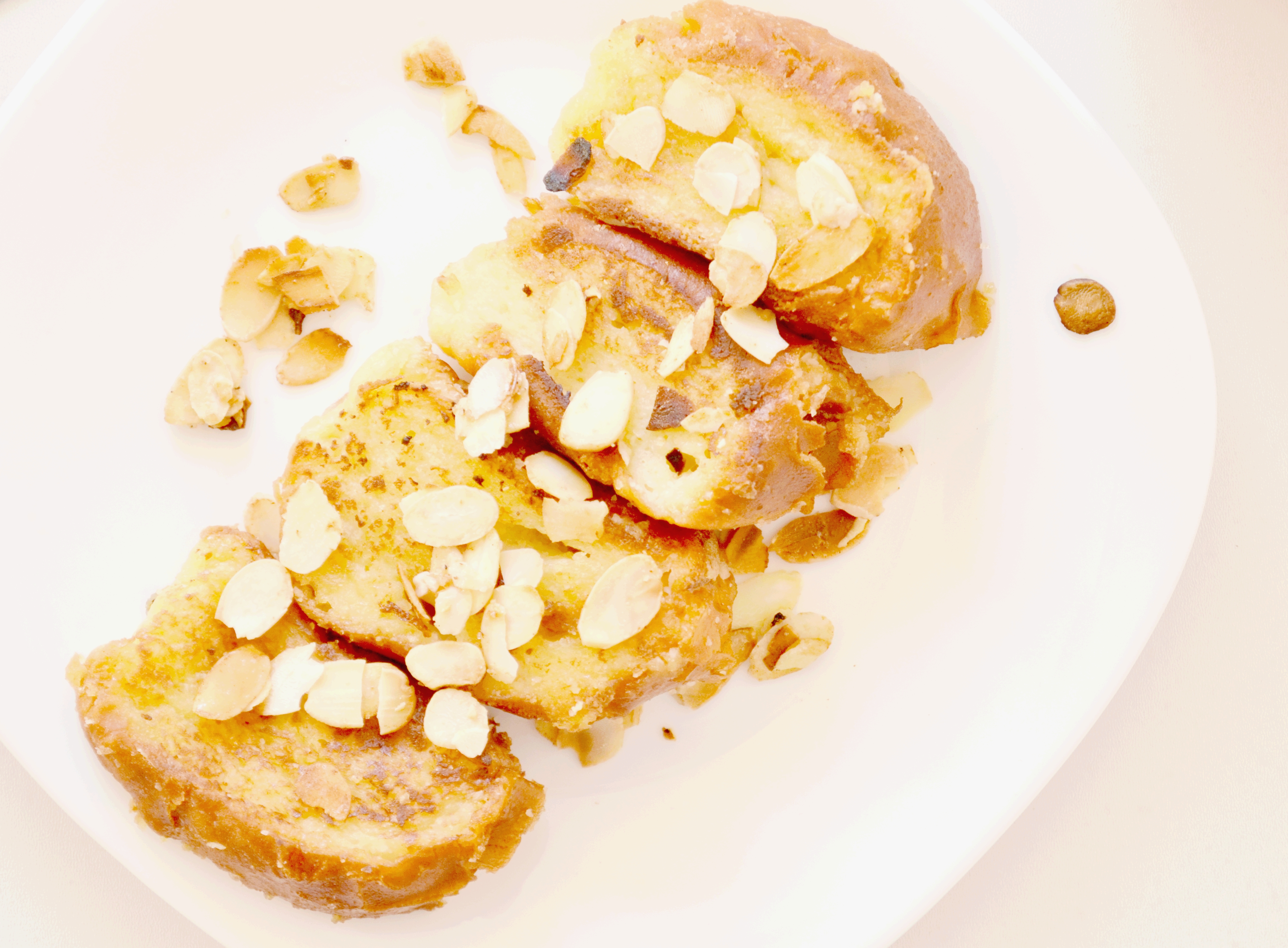 Quelle joie de vous retrouver aujourd’hui pour la 27ème édition de la Battlefood organisée cette fois-ci par la jolie Stéphanie du blog Cuisine moi un mouton ! Le thème du jour était « l’amande en folie ! » et ça tombe bien car on en avait encore des tonnes et des tonnes dans nos placards ! C’était donc l’occasion de se débarrasser de tous les restes des fêtes avec gourmandise, en cuisinant les restes de brioche rassis pour le petit déjeuner. Miam !