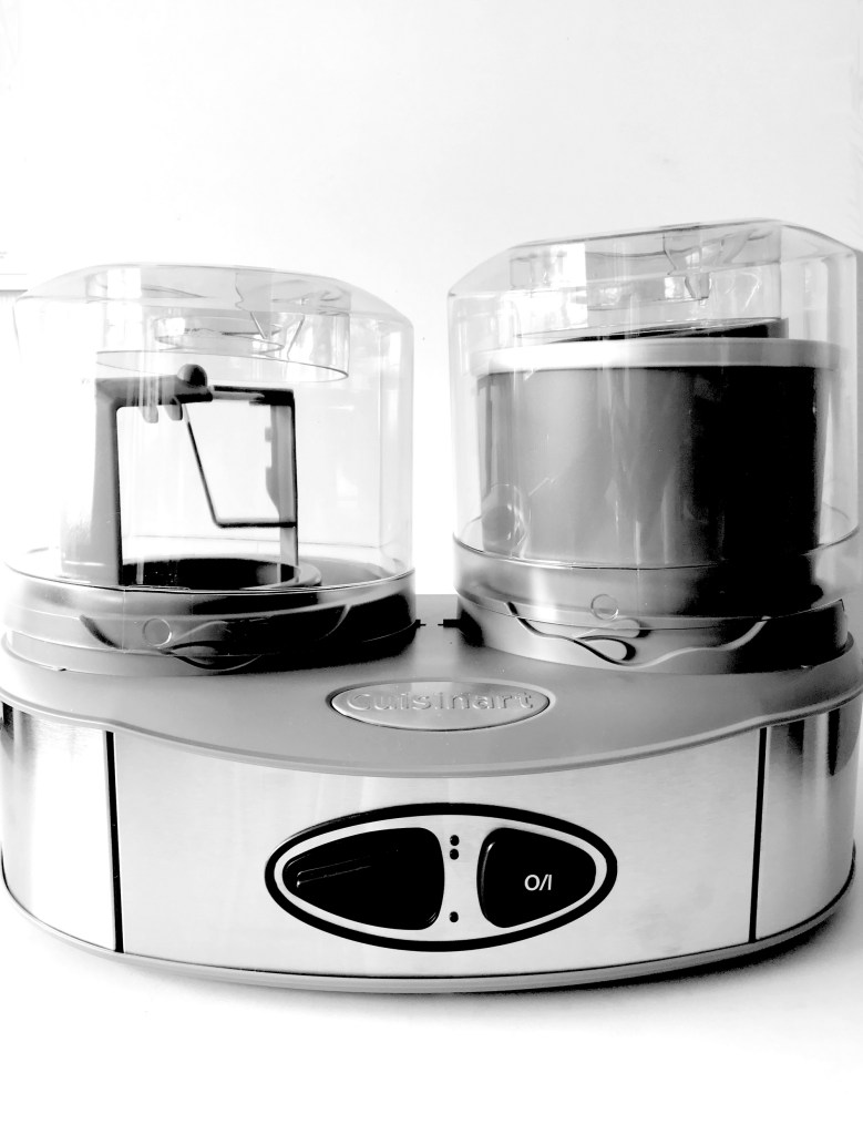 Je l’ai réalisée avec la sorbetière Cuisinart ICE40BCE, et je dois dire que le résultat est bluffant. Vous pouvez évidemment la faire avec n’importe quelle autre sorbetière, ou même à la main, en remuant la glace dans son bac toutes les 20 minutes (c’est quand même beaucoup plus contraignant).