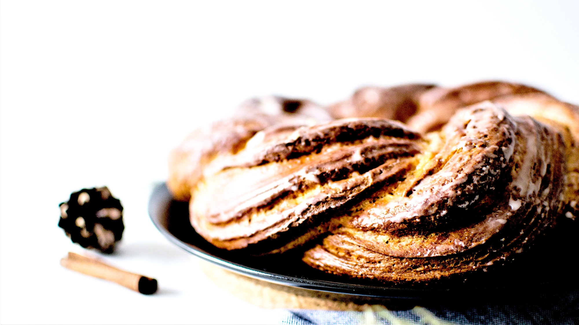 Étaler la pâte sur un long rectangle. Saupoudrer de cannelle. Rouler dans le sens de la largeur puis découper le boudin en deux. Tresser les deux morceaux et former un cercle en joignant les deux bouts.