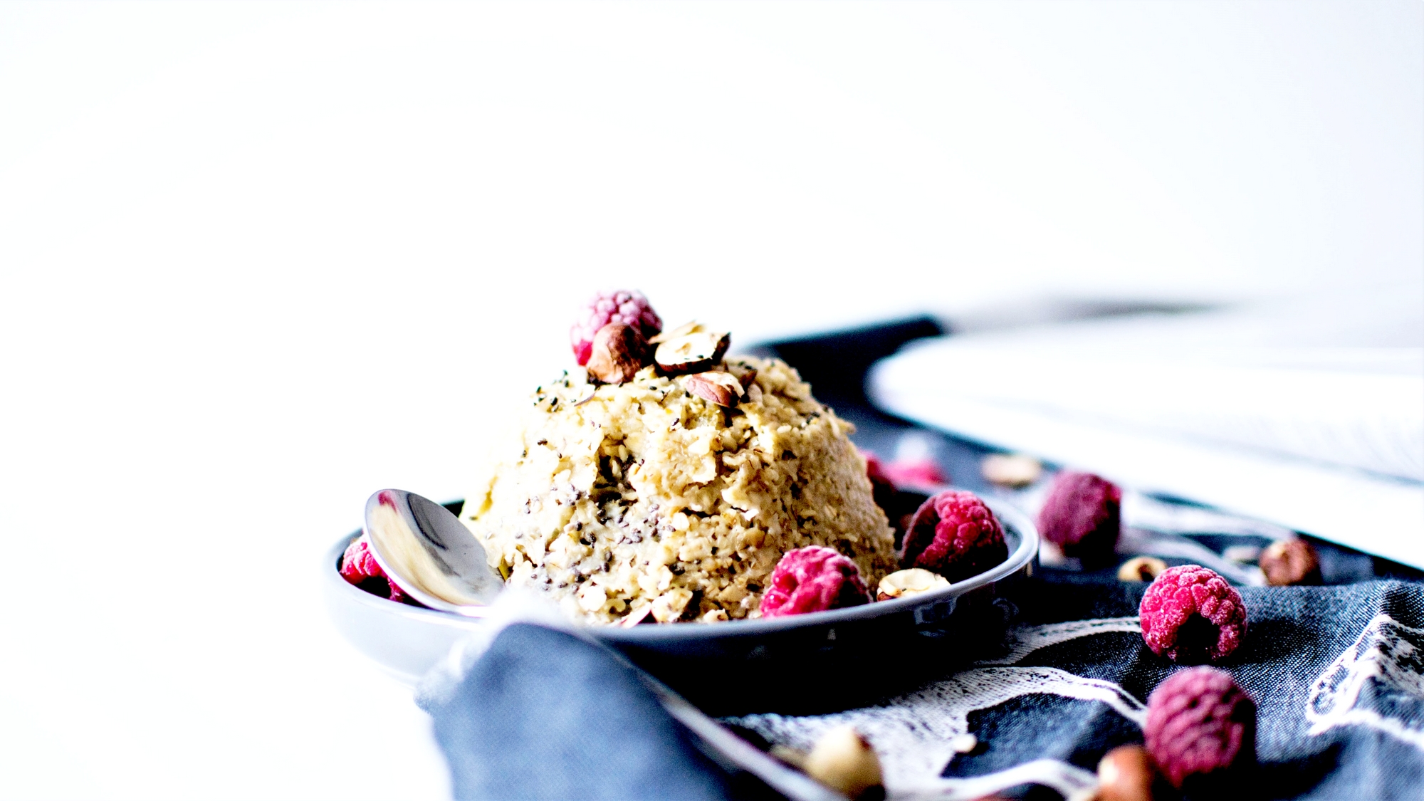 Servir avec des graines et des fruits frais (ici des framboises surgelées cet été).