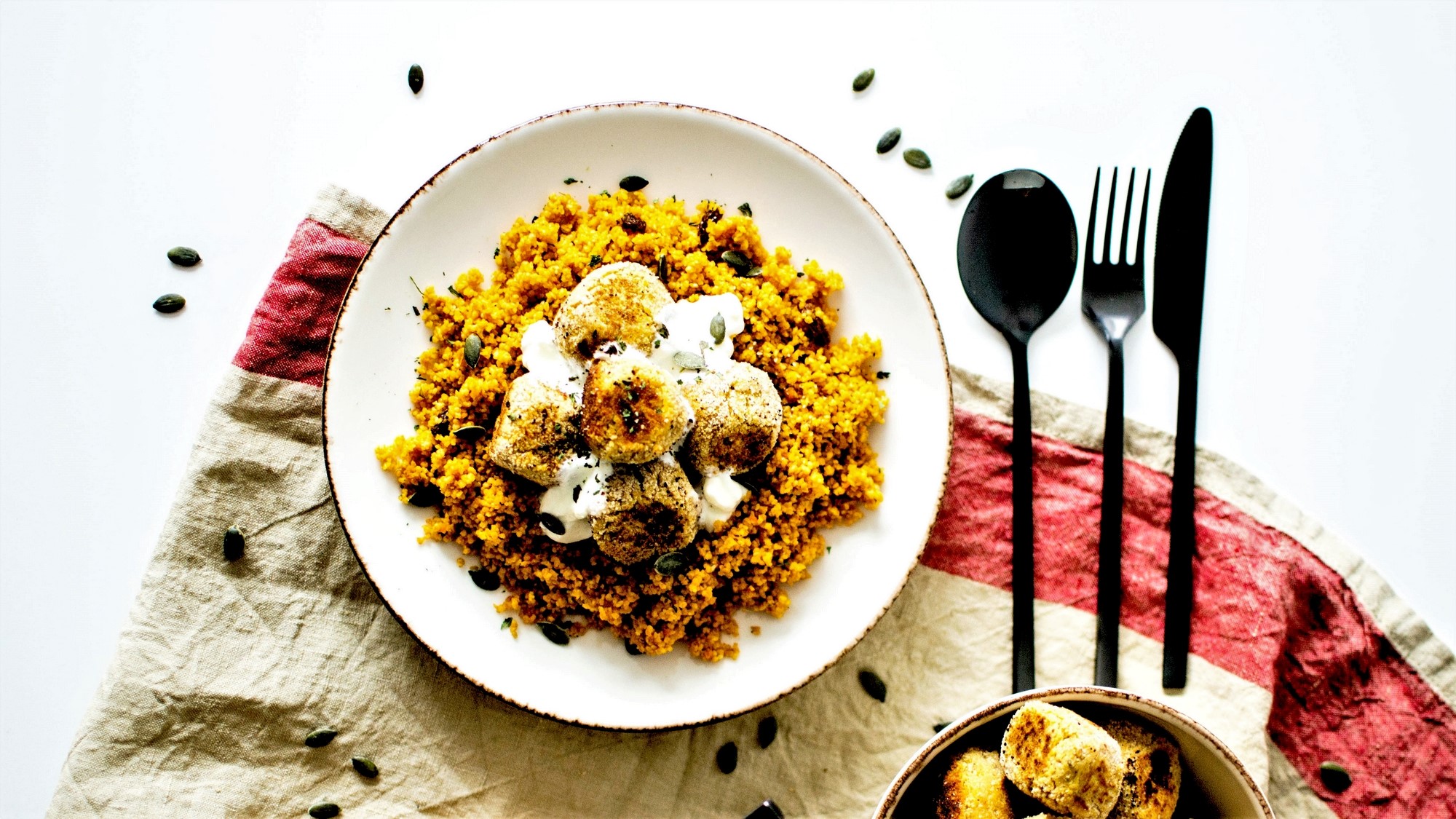 Ces boulettes peuvent être servies avec de la semoule, dans un wrap ou un pain pita comme des falafels, à l’apéro avec un peu de fromage blanc, ou pourquoi pas en accompagnement d’un tajine ou d’un couscous. Pour ma part j’ai choisi de les déguster avec la semoule façon couscous végétarien (en vrac chez Day by Day) et un peu de yaourt grec en guise de sauce (on peut évidemment le remplacer par une sauce aux tomates ou pourquoi pas du guacamole …). Une recette donc 100% zéro déchet et que vous trouverez également dans la boutique à partir d’aujourd’hui.