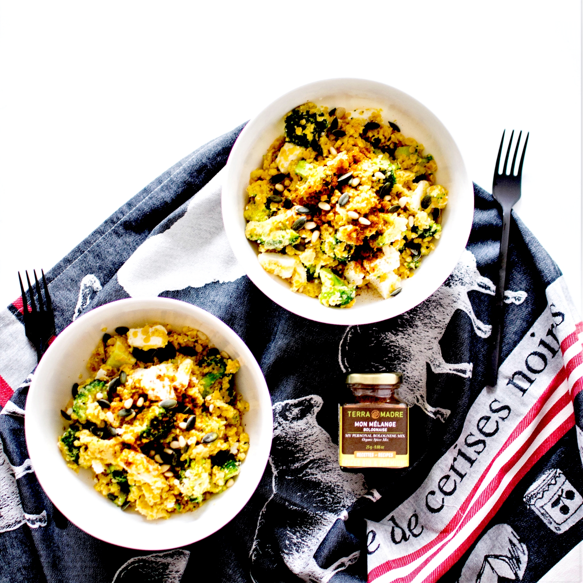 Assiette complète – Lentilles corail, Brocoli, Oeufs et Manouri