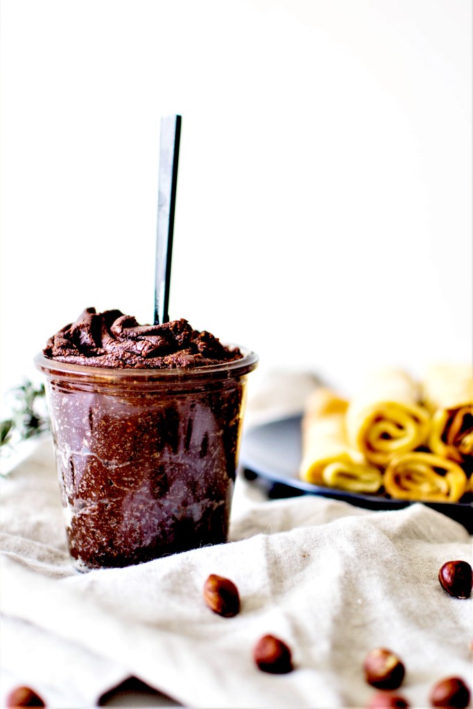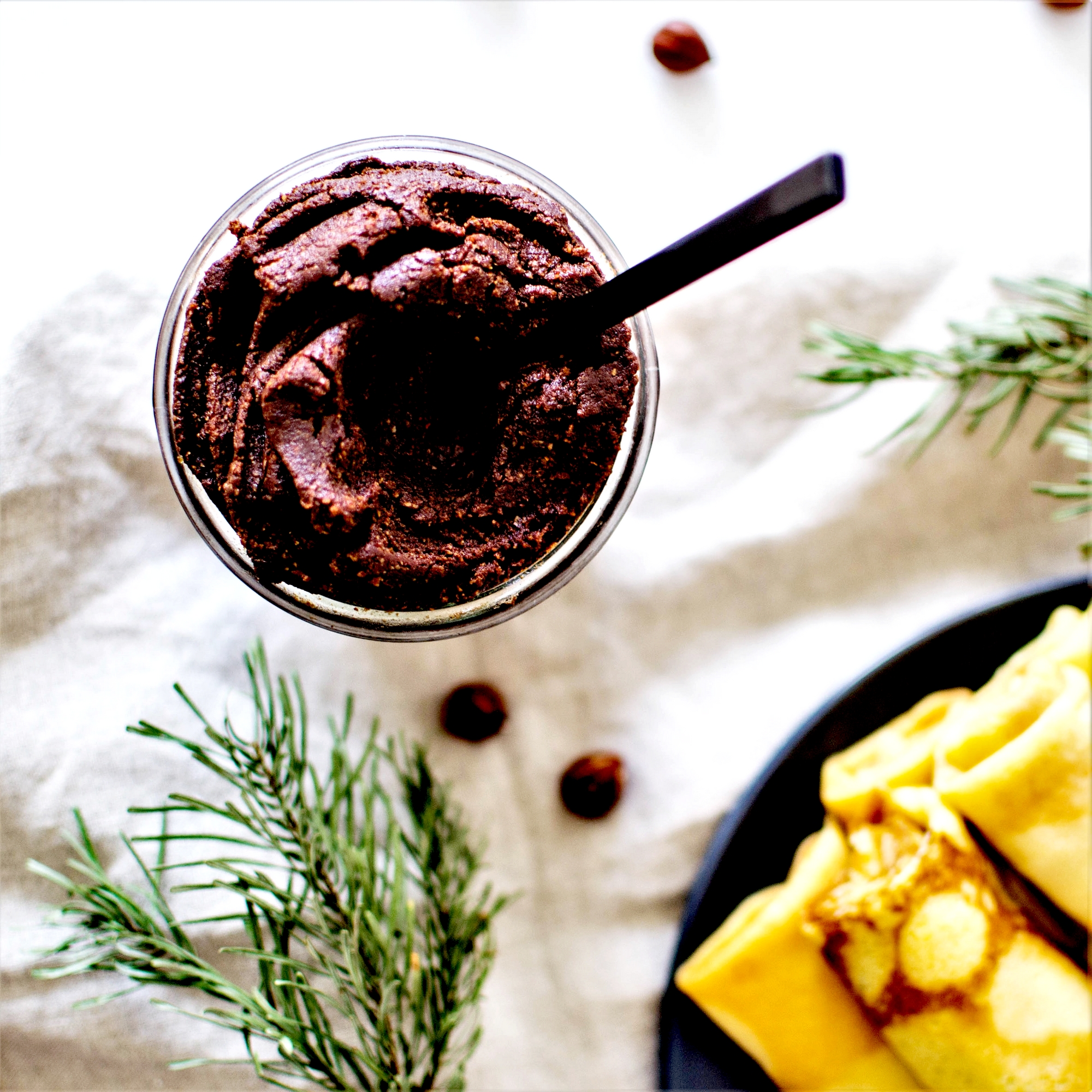 Que diriez-vous de réaliser une pâte à tartiner maison et vegane, pour des crêpes gourmandes, saines et sans substances douteuses ou controversées ? Avec 3 fois plus de noisettes que de chocolat, elle ne contient ni huile de palme, ni graisses saturées … et son goût est terriblement addictif. De plus, l’indice glycémique de cette pâte à tartiner reste assez bas puisque je l’ai sucrée au sirop d’agave (seul le sucre contenu dans le chocolat est présent). De plus, les noisettes étant assez riches en lipides pour obtenir une texture crémeuse, elle ne contient aucune graisse inutile. Bref, il n’y a que du bon là dedans, c’est une recette plutôt healthy dont vous aurez du mal à vous passer … :)
