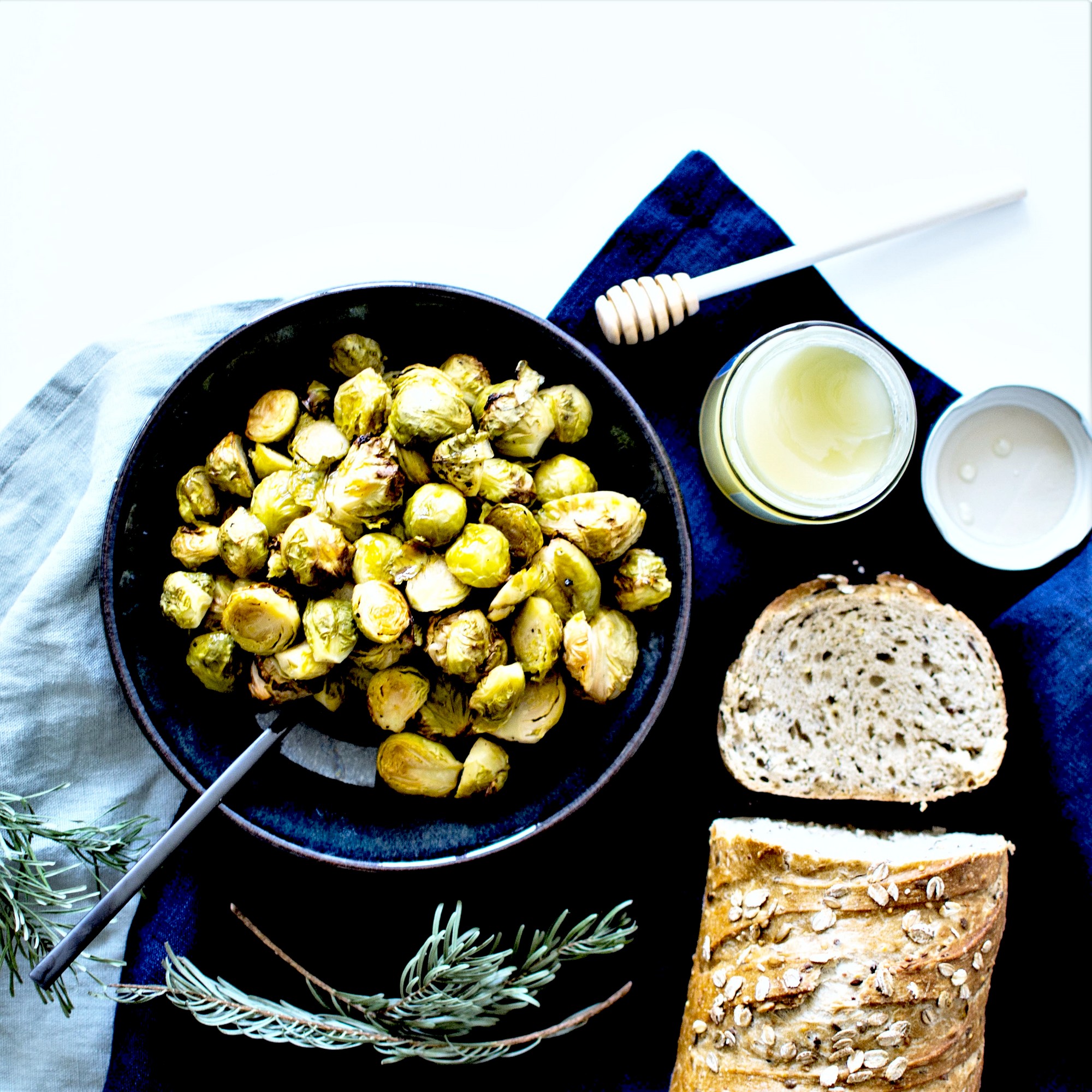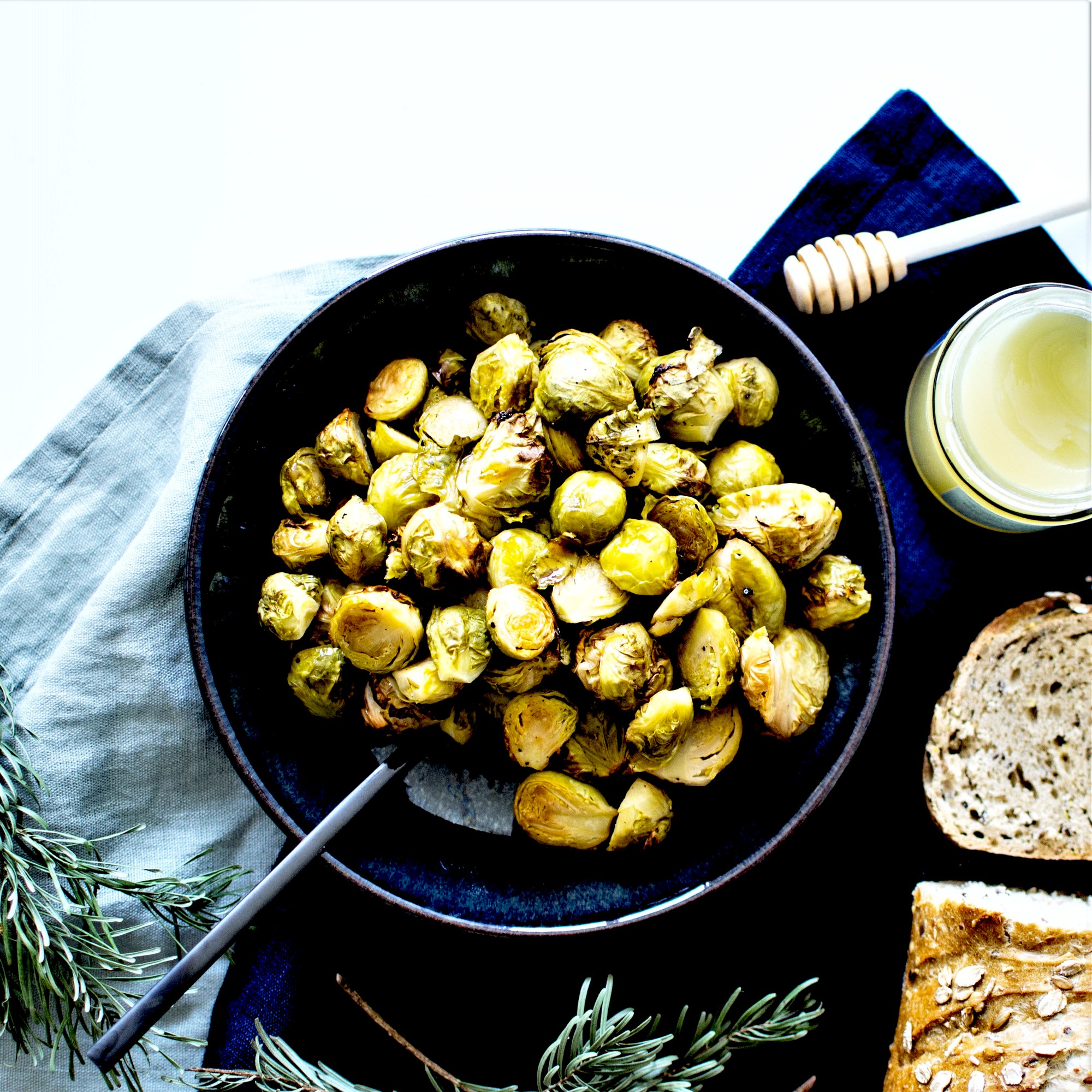 Heureusement, ma copine Paule, fan de ces petites boules vertes depuis son enfance a été de bons conseils et m’a suggérée de les rôtir (sa recette : sauce soja et huile d’olive, 15 minutes au four). Après quelques recherches j’ai préféré tenter la version au vinaigre et au miel (l’acidité et le sucre cassant davantage l’aspect amer du légume). Et la magie a opéré … ça a été une révélation ! Je devrais d’ailleurs créer le hashtag #leschouxdebruxellespourlesnuls ! En seulement 15 minutes de cuisson, ces petits monstres verts se sont transformés en petites douceurs subtiles. L’amertume ne disparaît pas totalement (faut pas rêver) mais elle est remarquablement contrebalancée par l’effet sucré-salé de l’enrobage. Bref, encore un préjugé de déconstruit … les choux de Bruxelles vapeur de Mamie, c’est fini ! 💪🏼
