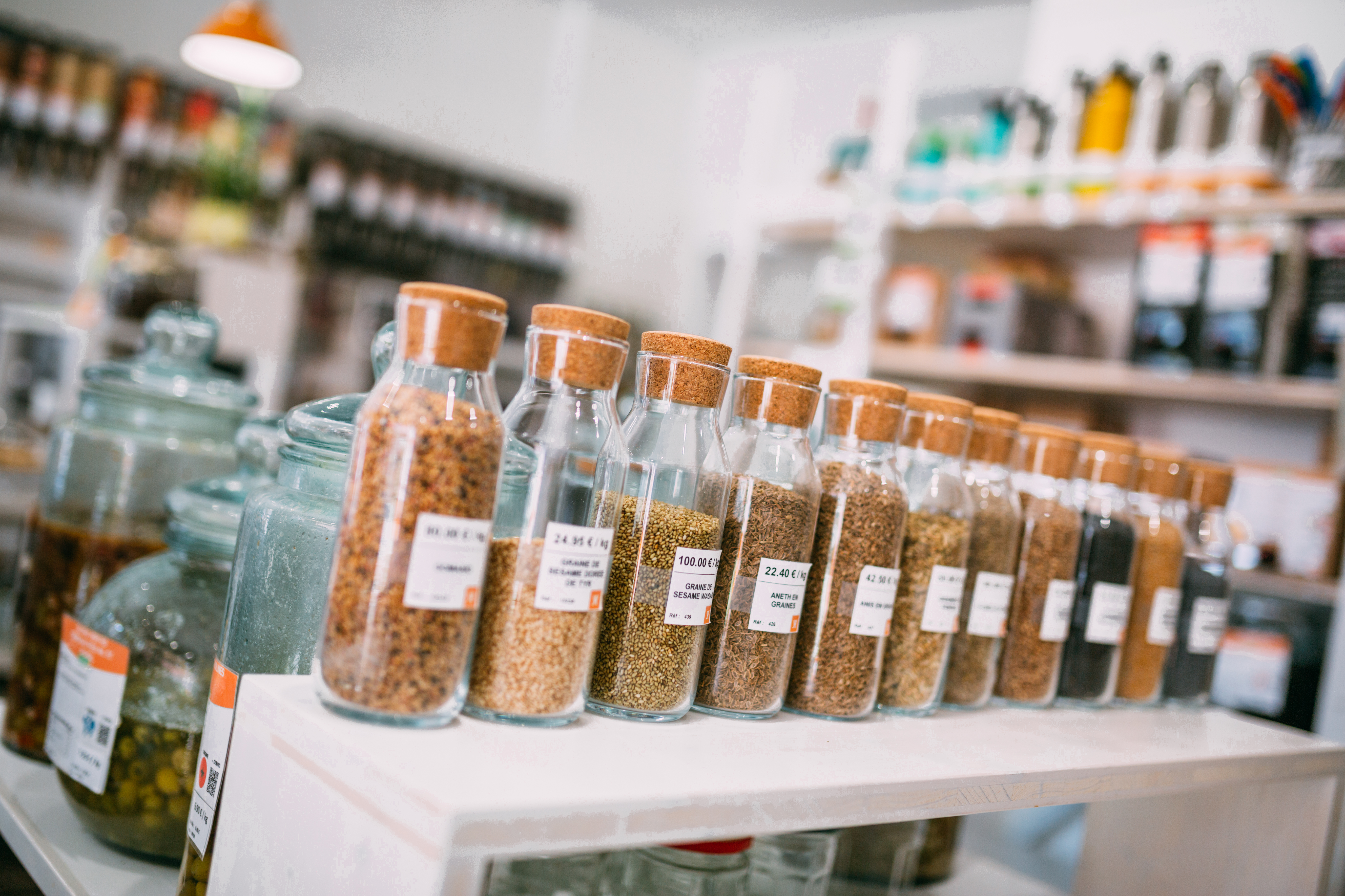 Pour compléter ses courses, il faut ensuite trouver une épicerie de proximité où l’on peut trouver tout ce qu’il nous manque. Personnellement je privilégie le vrac et le bio. Mais chacun peut faire selon ses moyens et ses envies, l’idée étant de n’avoir à s’y rendre qu’une fois par mois pour éviter la multiplication des déplacements.