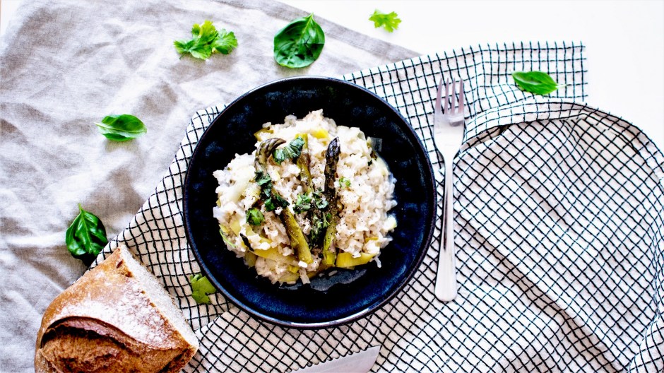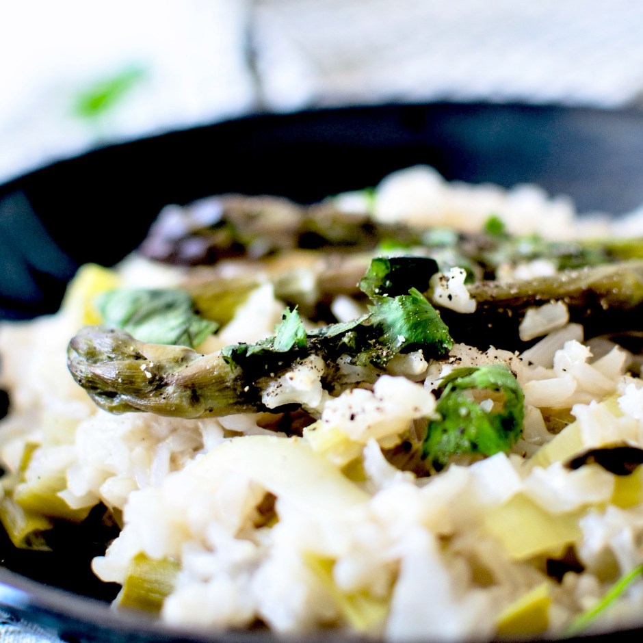 Ce risotto en est la combinaison parfaite. A la fois gourmand et riche en fibres et minéraux, il permet d’aborder le printemps avec plaisir. J’y ai mis du riz thaï complet, plus facile à digérer et des asperges et poireaux bio. On peut le réaliser en grande quantité, pour le batch cooking de la semaine par exemple. C’est un plat tellement facile à réchauffer. Et comme chaque vendredi, la recette est également à retrouver dans la boutique de Céline et Damien de Day by Day Strasbourg.