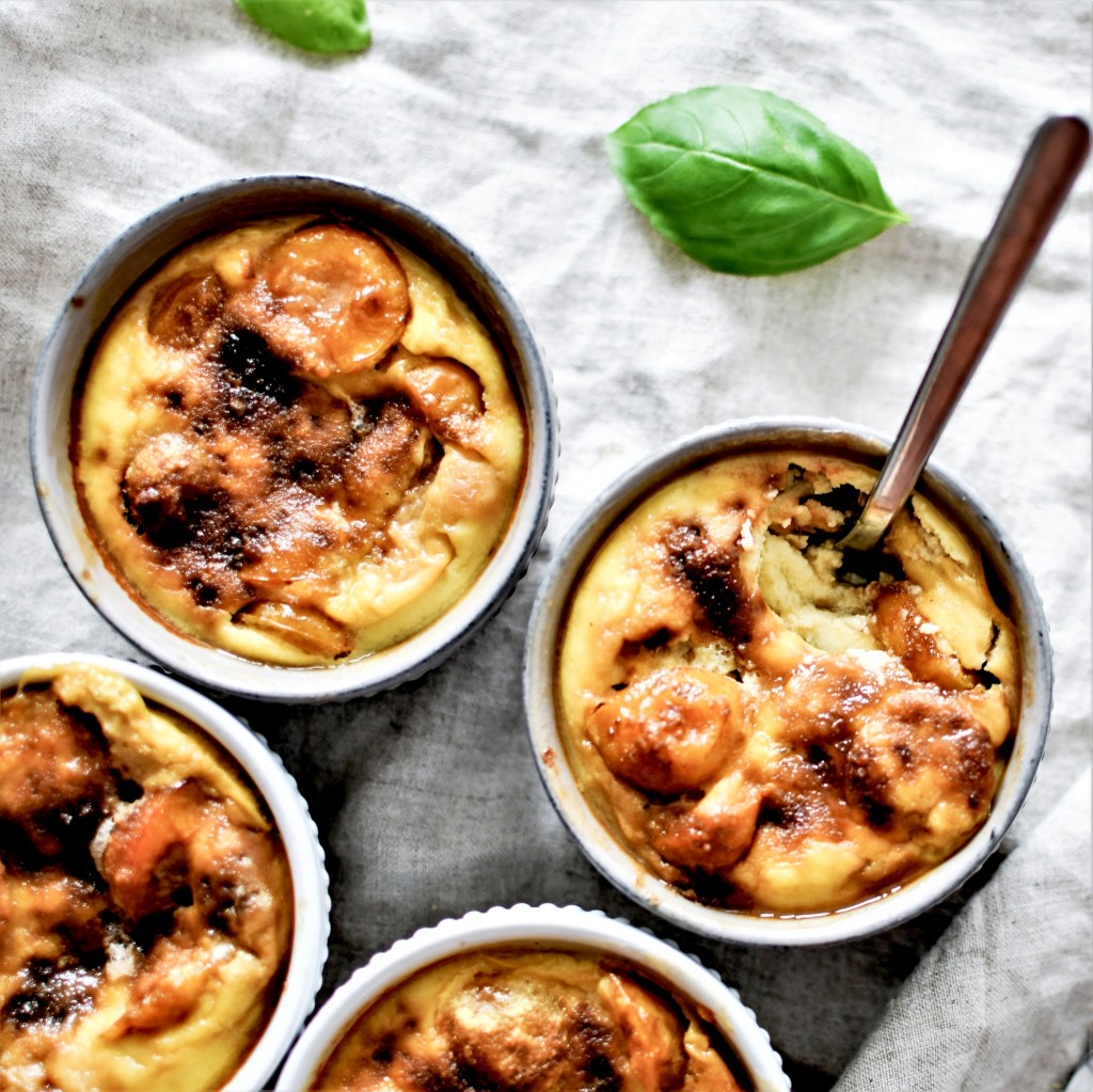 Ce que j’aime dans ce fruit c’est son sucrage naturel. J’y ai mis très peu de sucre (j’en ai juste saupoudré sur le dessus) et ai vraiment blindé mes ramequins de mirabelles pour un goût maximal. Elles se marient parfaitement au lait de coco, j’ai même eu l’impression d’avoit toujours dégusté ces deux ingrédients ensemble, et la farine de coco apporte une texture soyeuse très agréable. Bref ! Encore une belle idée pour profiter des fruits de saison, et évidemment on peut y remplacer les mirabelles par n’importe quel autre fruit.
