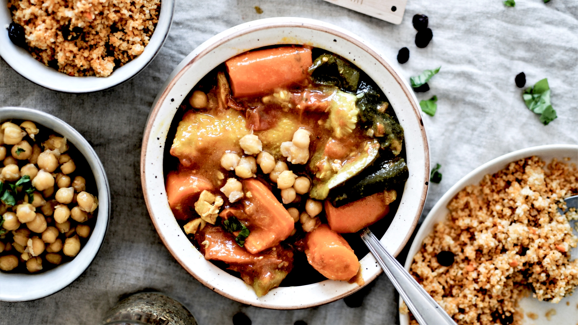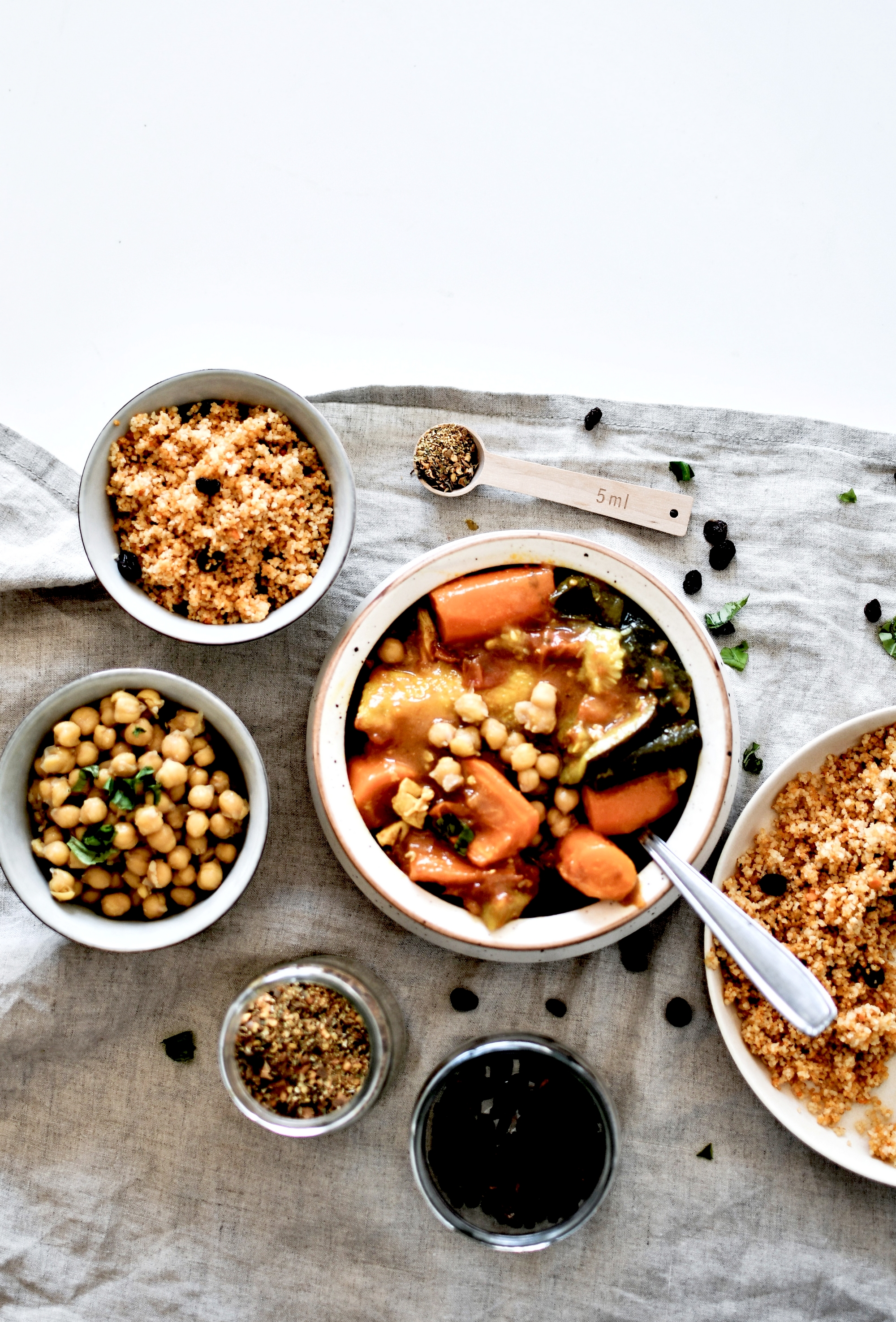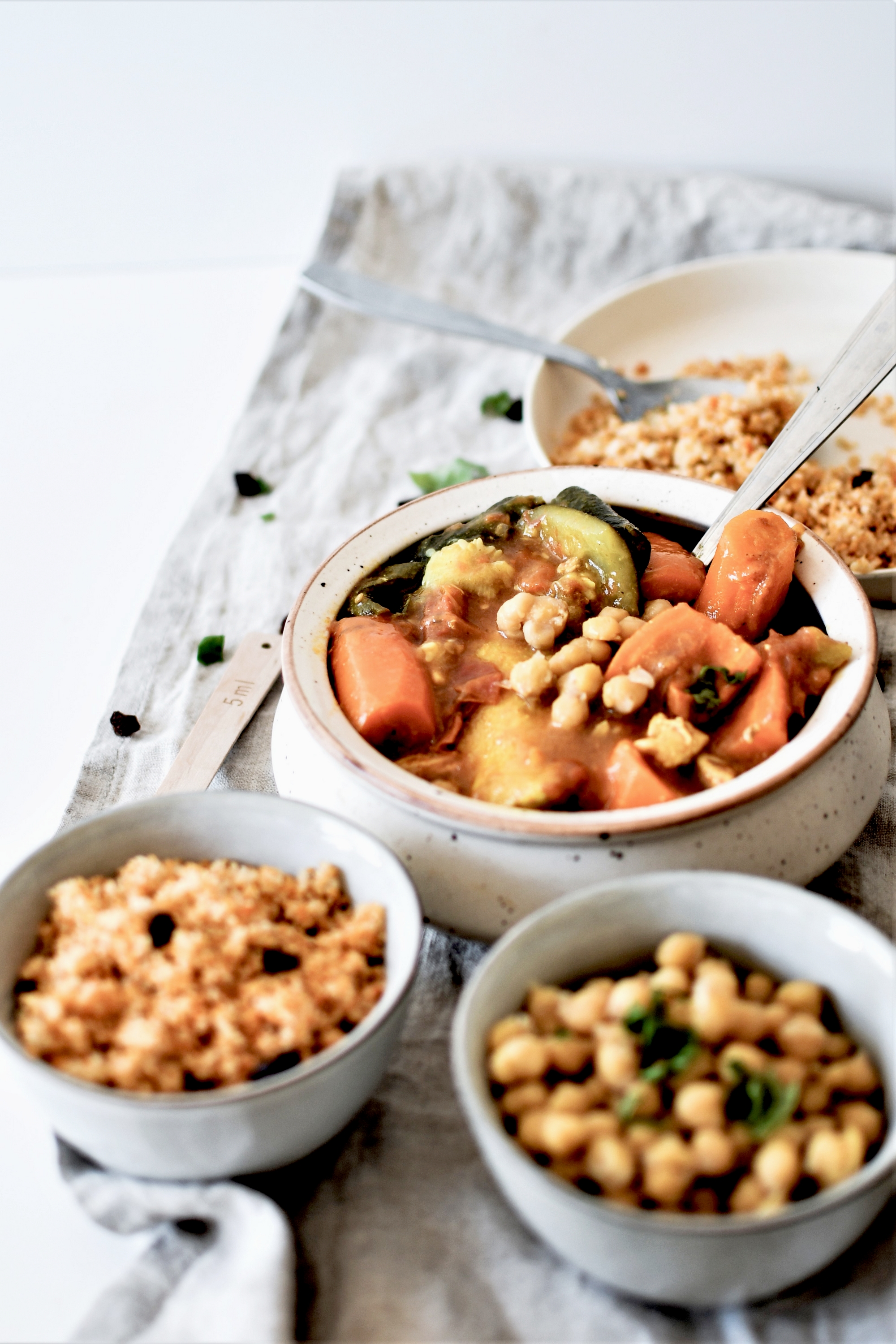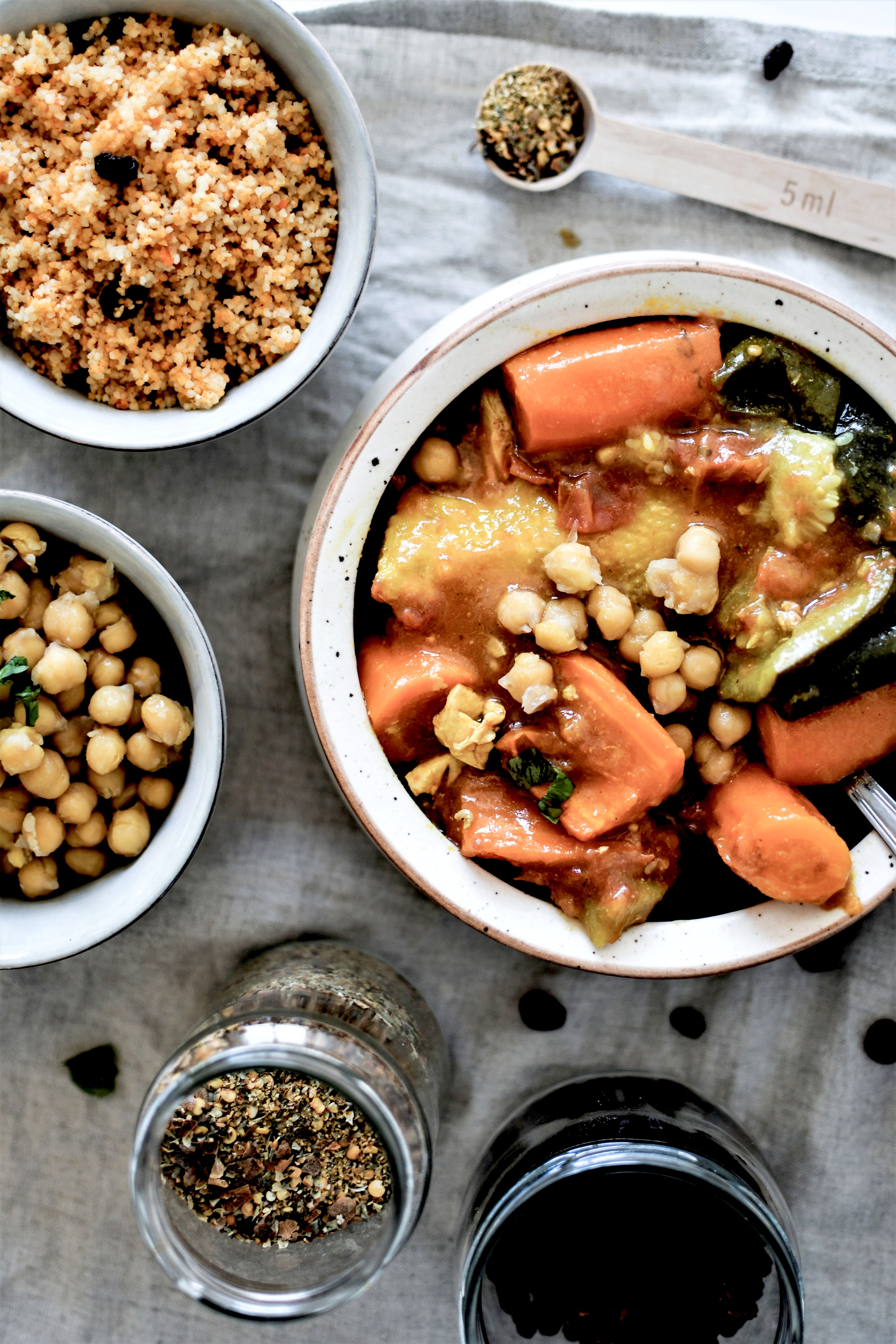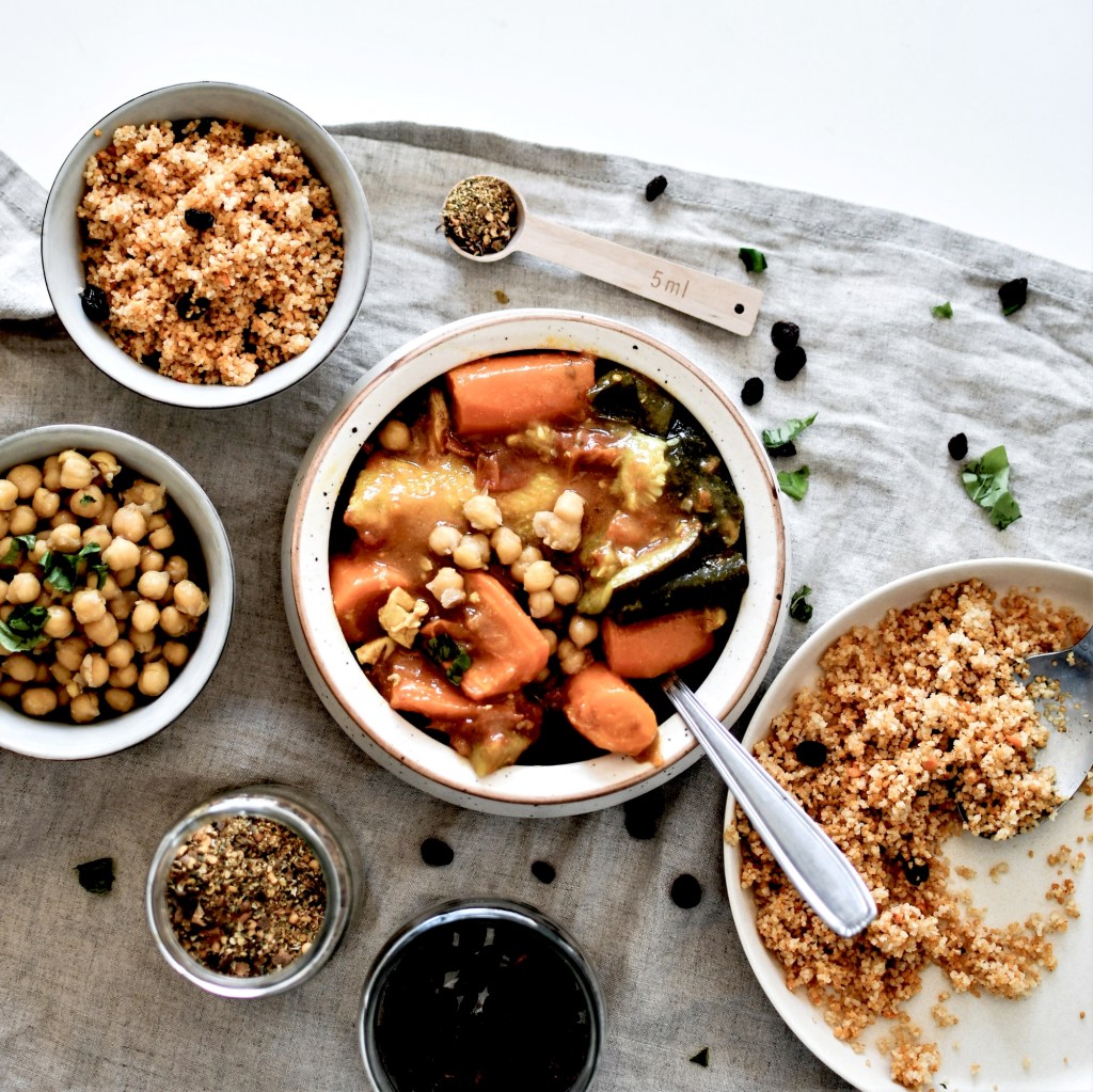 Mon petit secret à moi, qui n’est pas marocain du tout mais alsacien, c’est d’utiliser au maximum des produits locaux et de saison. Un poulet fermier bio de la Ferme de la Plume d’Or Kuntz à Dachstein, des légumes bio des Jardins du Giessen, des épices du moulin des Peupliers à Lupstein … Et ma semoule ainsi que les pois-chiches et les raisins secs proviennent de chez Day by Day Strasbourg. La recette est d’ailleurs à retrouver également dans leur boutique ce vendredi. Bref, on peut cuisiner oriental avec des produits locaux… tout le bonheur est là, en fait.