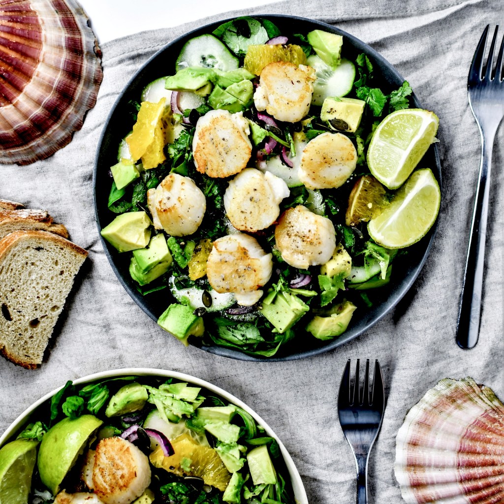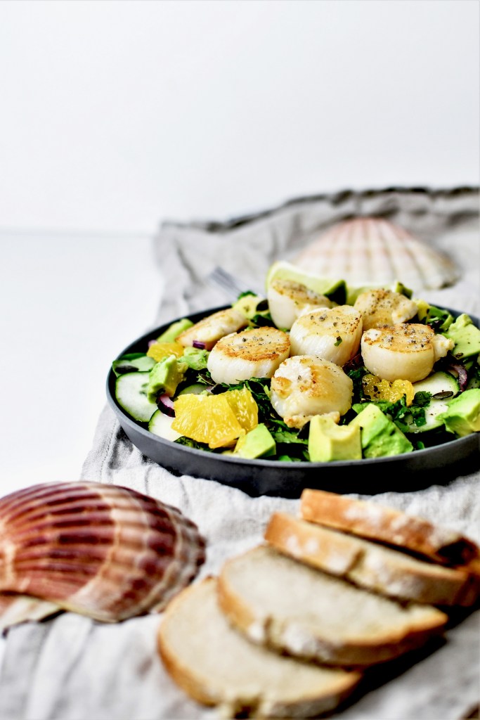 Pour ce qui est de l’offre justement, Poiscaille fonctionne sur un système de casiers (avec ou sans abonnement). Selon les formules, on peut recevoir la pêche du jour (une jolie surprise venue tout droit de la mer) ou faire sa sélection selon les propositions des derniers arrivages. Pour ma part j’ai choisi un formule de 4 casiers livrés toutes les deux semaines (je vais toutefois vous épargner le récit de ma bourde, je me suis plantée dans la commande et ai reçu les 4 casiers d’un coup … faites donc attention au moment de la commande, mais ça ne pouvait arriver qu’à moi …). Les produits arrivent ultra frais et sont livrés soit au domicile, soit en point de vente partenaire (à Strasbourg, c’est dans la boutique de La Nouvelle Douane). Pour ma première commande, j’ai craqué pour les coquilles Saint-Jacques entières dont la saison vient tout juste de commencer, le tout pour 22,90 € avec la livraison. J’en ai reçu 2 kg entières fraîchement pêchées, que j’ai ensuite intégrées dans une salade d’hiver sucrée salée toute douce et légèrement acidulée. Un délice.