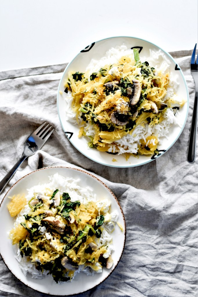 Une réflexion sur “Courge spaghetti sautée – Epinards, Champignons & Feta