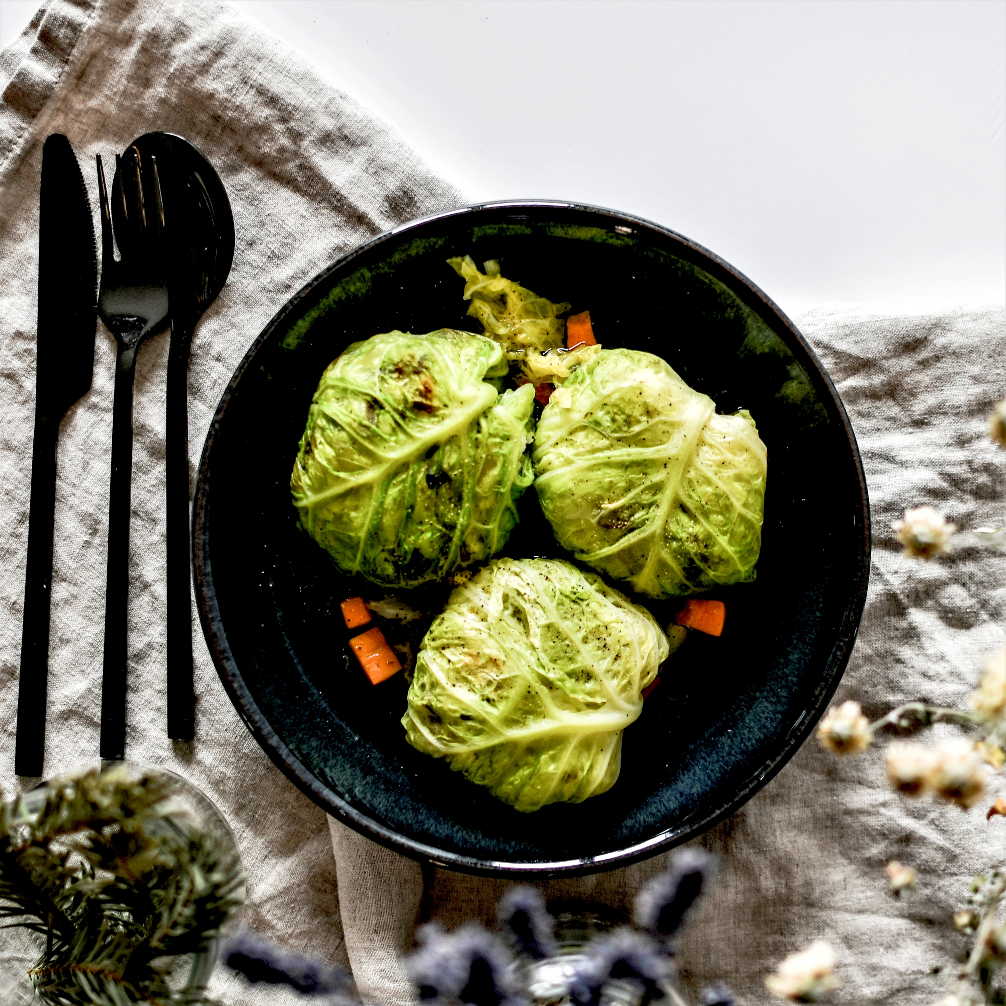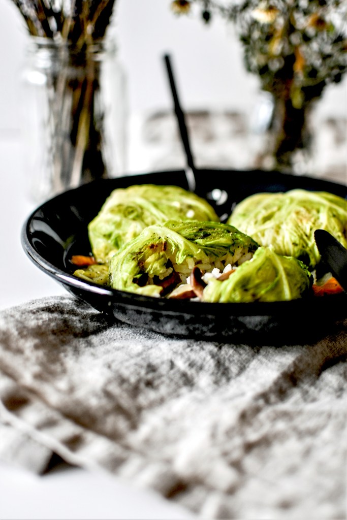 Bonjour tout le monde ! :) En ce vendredi consacré au zéro déchet, je vous propose une très belle recette végane de chou farcis au riz et champignons, à servir avec un délicieux bouillon.