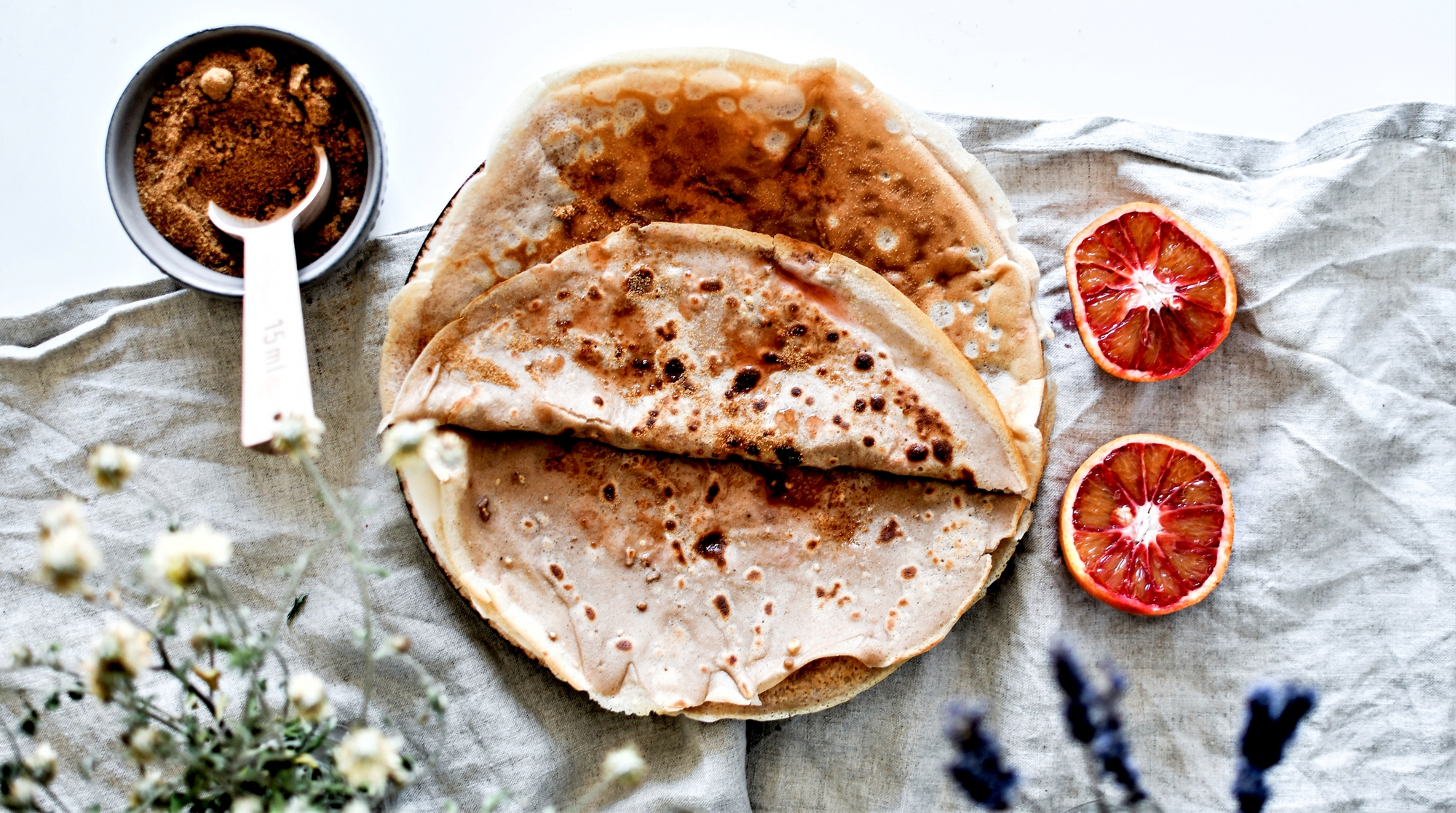 Pour la garniture, j’ai simplement versé un peu de jus d’orange sanguine sur mes crêpes avant de les parsemer de sucre muscovado. TUERIE. De une parce que j’adore le goût de ce sucre qui justement est moins sucré que le blanc, mais surtout plus parfumé, et de deux, parce que cette idée d’y mettre un peu de jus d’orange sanguine est juste renversante. Bref, à refaire ! (Max quant à lui s’est goinfré de pâte à tartiner. :)))
