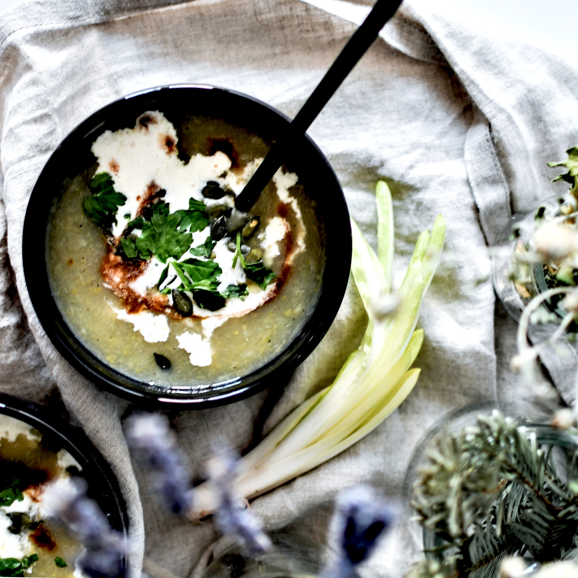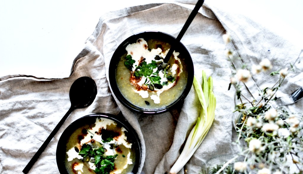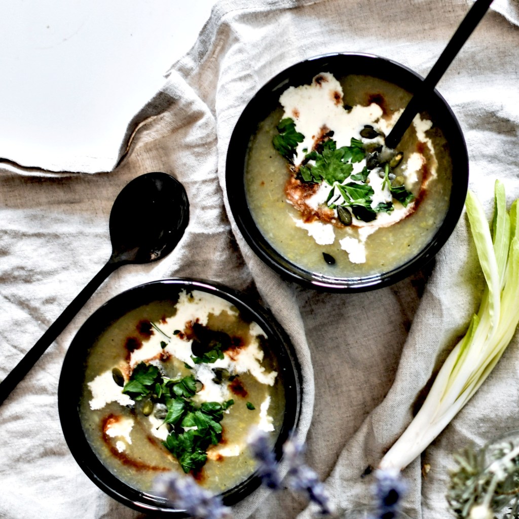 Servir dans des bols avec un peu de crème, une goutte de balsamique, quelques feuilles de persil et les graines de votre choix.