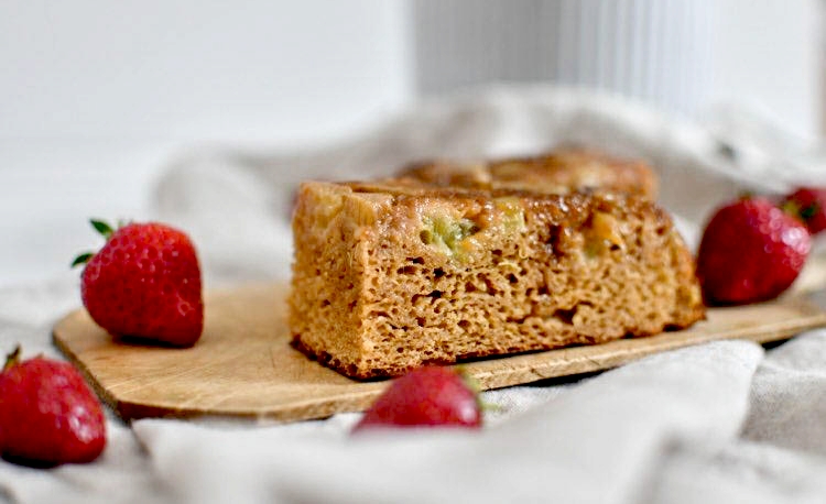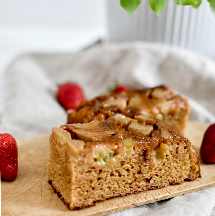 Je l’avoue, c’est Max qui m’a inspiré cette idée démente. J’avais déjà vu plein de recettes d’upside down cakes sur Pinterest mais n’avais jamais tenté l’expérience. Contrainte supplémentaire du confinement, je n’avais que deux œufs, de la farine de grand épeautre complet et du sucre de coco pour réaliser la pâte. Hé bien, ça allait très bien. Comme quoi, on arrive toujours à se débrouiller avec les moyens du bord.