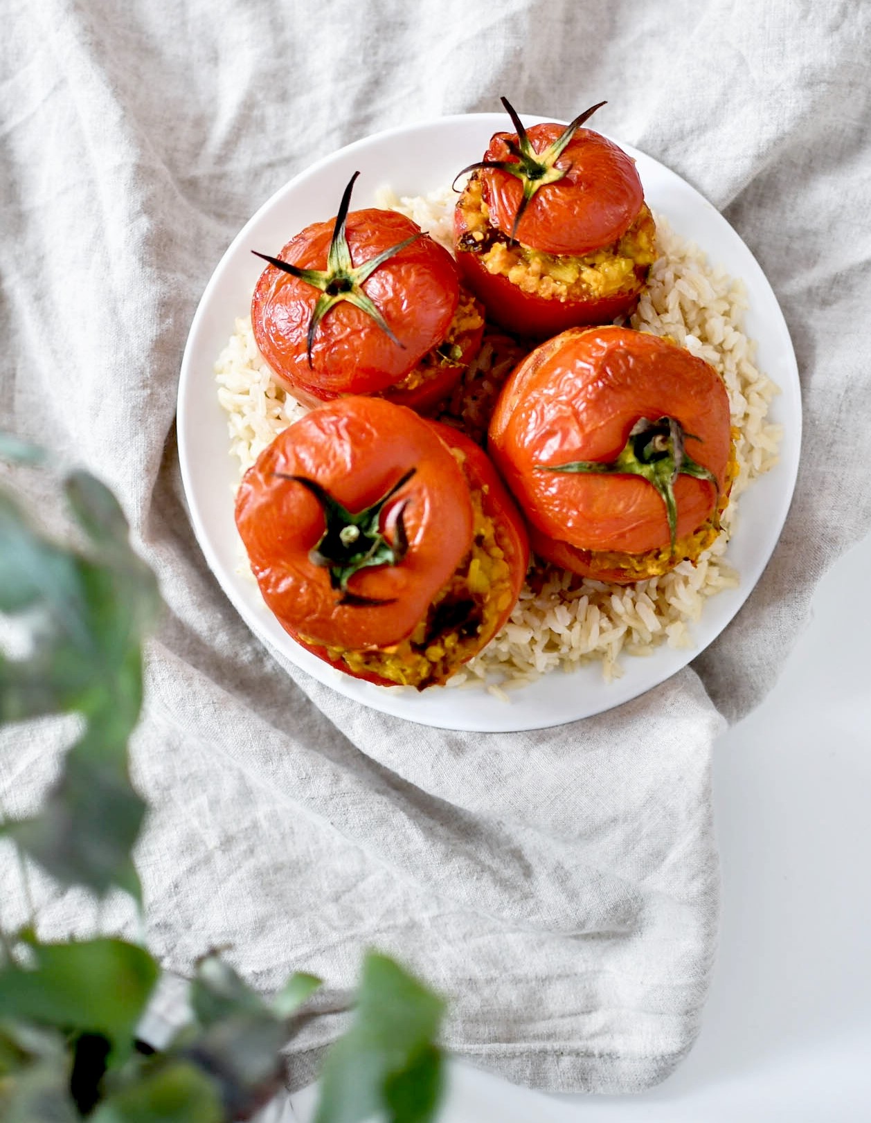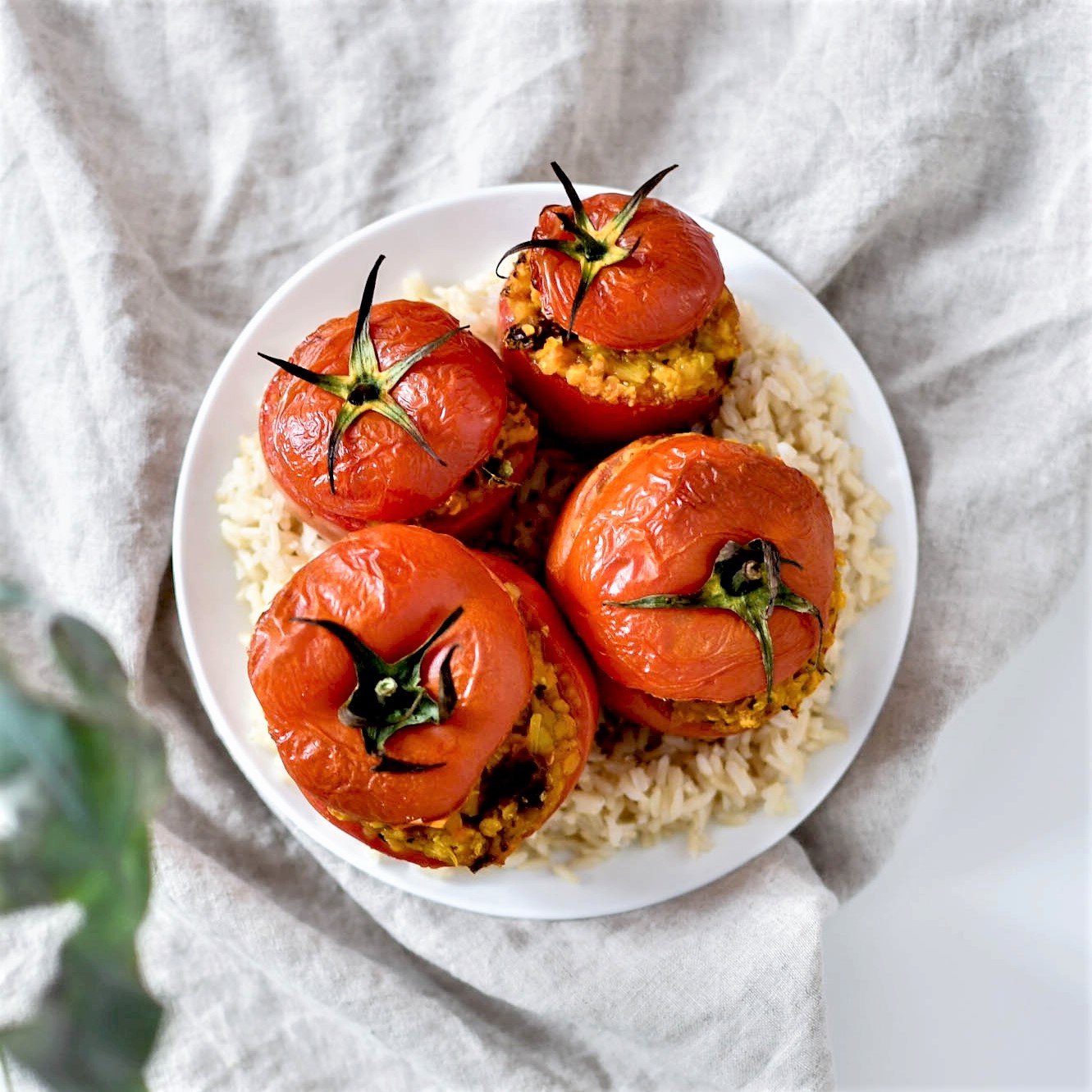 Avec de belles tomates bio et locales on peut refaire le monde. J’ai vidé mes derniers bocaux de lentilles grâce à cette recette et vais pouvoir retourner faire le plein au plus vite chez day by day. C’est tout simple, on préchauffe le four, on prépare la farce avec les lentilles, les légumes et les épices de notre choix, on remplit les tomates et on enfourne le tout.