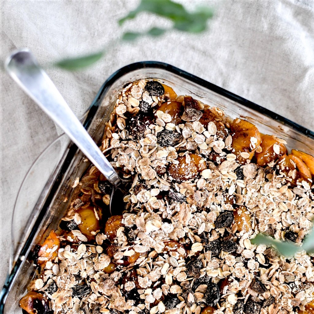 Il y a quelques jours, mon panier de légumes des Jardins du Giessen contenait un beau kilo de mirabelles bien colorées. Après en avoir mangé la moitié, j’ai envie de les faire rôtir comme je l’avais fait ici avec des quetsches. Puis j’ai eu envie d’y ajouter un peu de croquant et de gourmandise, mais avais la flemme de faire une pâte à crumble. M’est donc venue cette idée que de les agrémenter de muesli avant de les enfourner. Idée sublime. On obtient un dessert sain et équilibré.