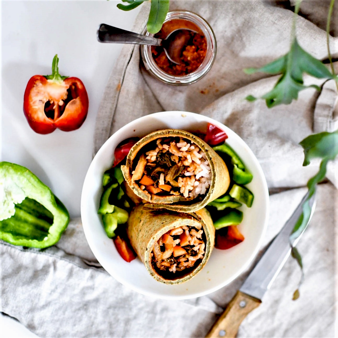 Il me reste une belle dose de farine de lentilles vertes de chez day by day Strasbourg et je dois dire que je suis en amour pour ce produit. Elle a du goût et surtout se tient très bien. J’en ai fait des crêpes roulées ce weekend et ça m’a donné l’idée d’en faire des burritos.