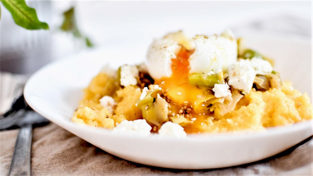Pour le service : déposer la polenta au fond d’une assiette creuse. Recouvrir de fondue de poireaux et de feta émiettée, déposer par dessus l’œuf de 6 minutes épluché.
