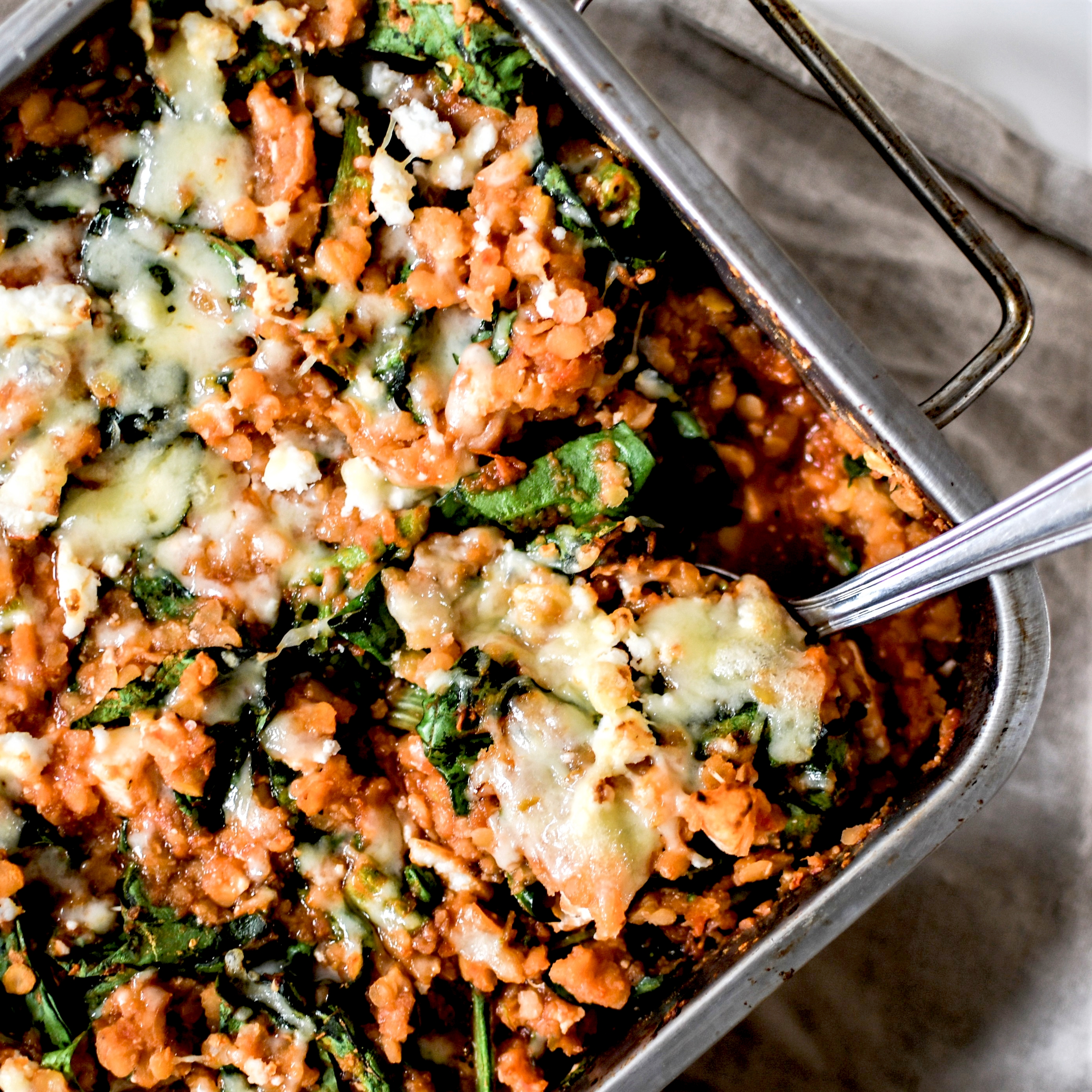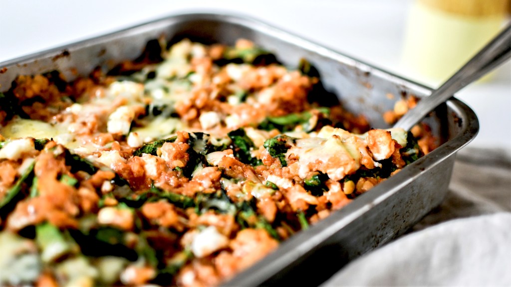 En y ajoutant des épinards, de la sauce tomate, de la feta (et un peu de fromage comme ici), on obtient un plat complet, protéiné, riche en fibres et gourmand. Et si l’on a envie de féculents ou que ça tienne mieux au ventre, on peut le servir avec un peu de riz.