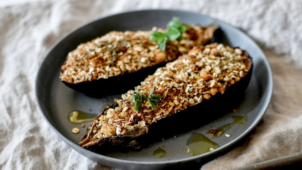 Le mélange chapelure, flocons d’avoine, parmesan et huile d’olive est parfait pour la cuisson au four et apporte un croustillant incomparable. C’est le blanc d’œuf qui permet de lier le tout.