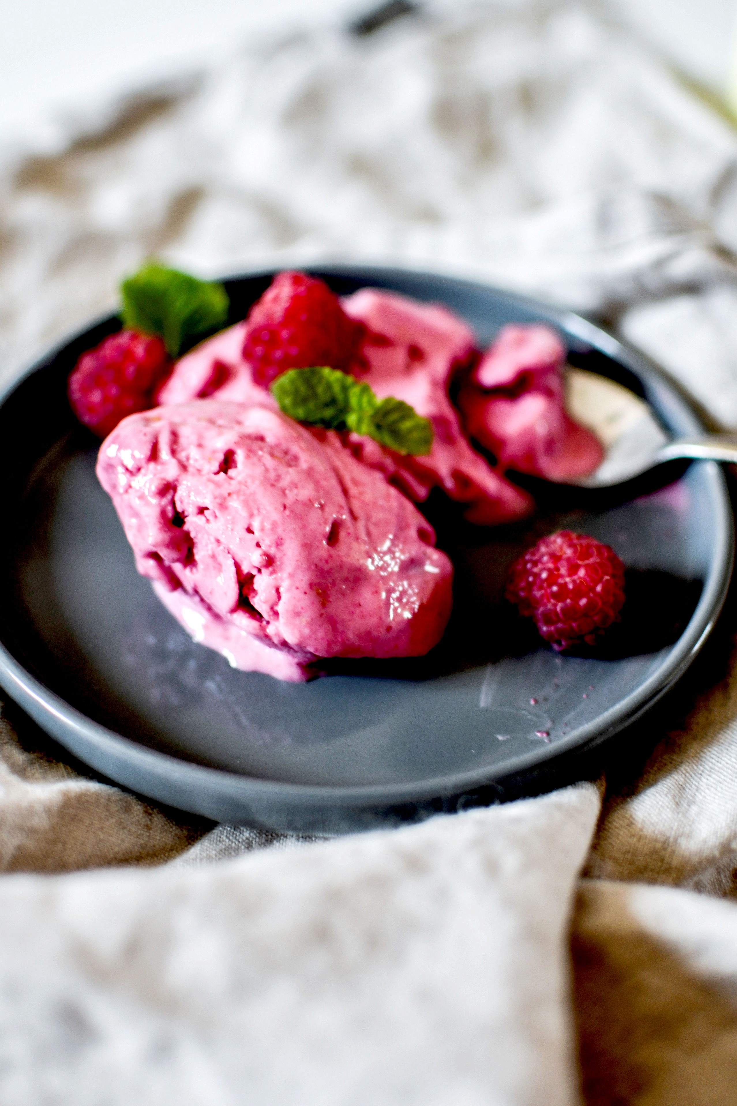 Dans le mixeur à nouveau, mixer les framboises avec le sirop d’agave et le lait d’avoine. Placer au réfrigérateur au moins une heure.