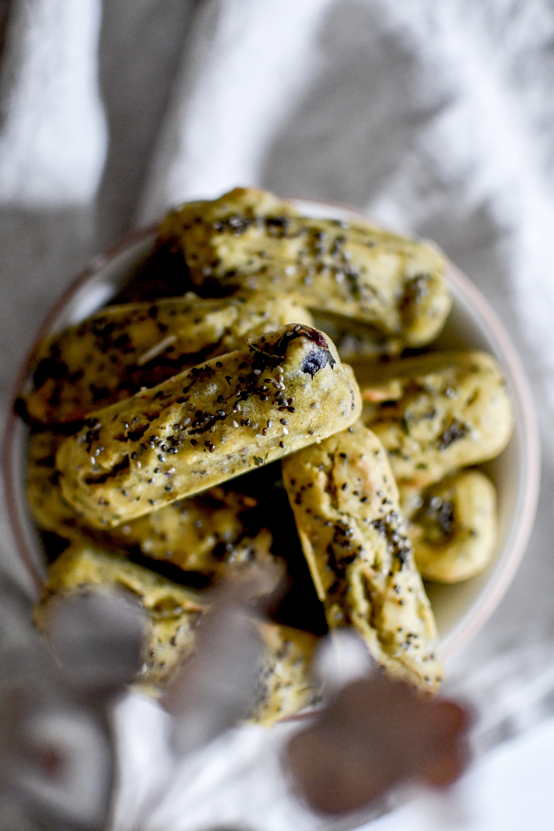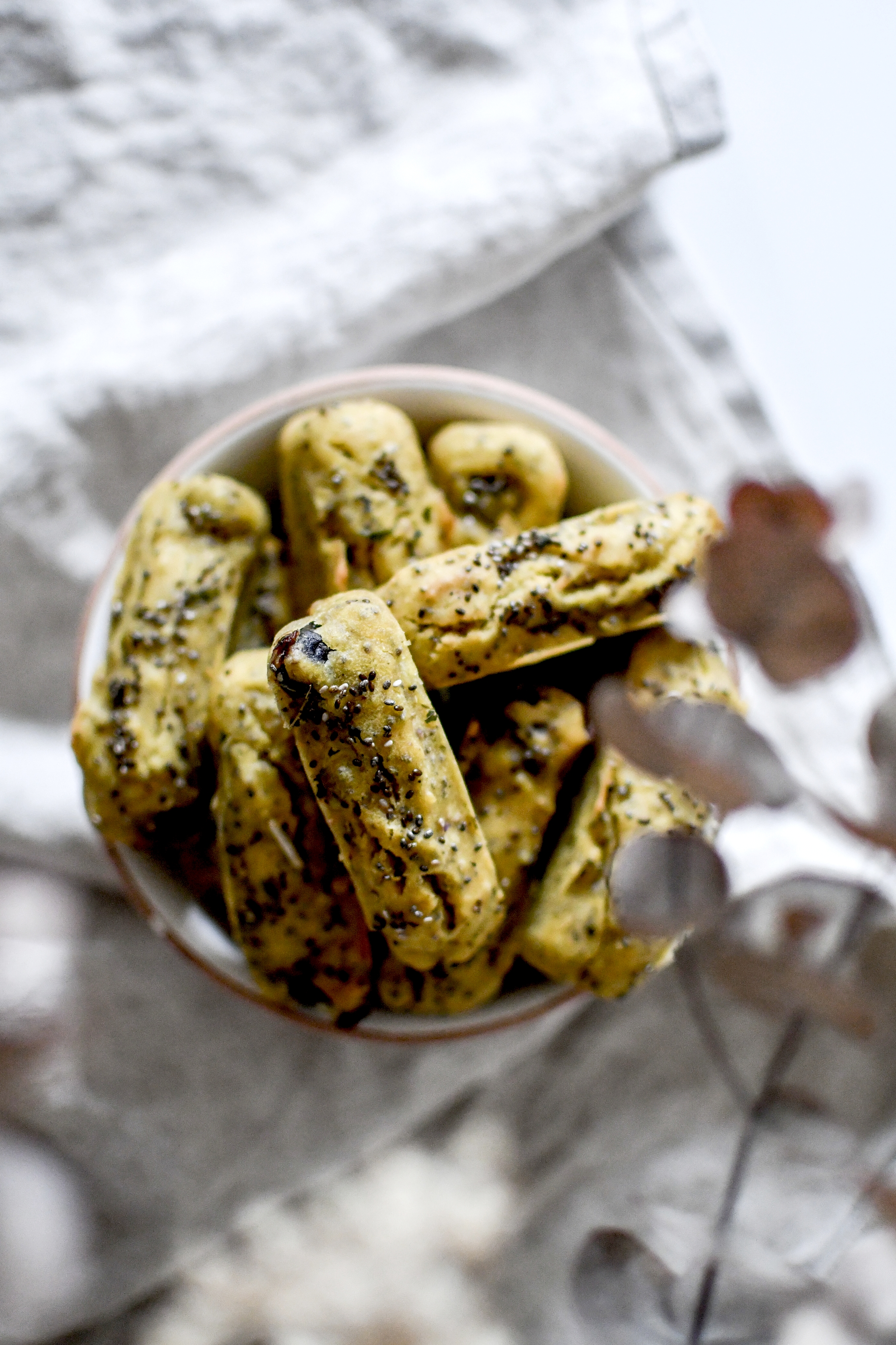 Mélanger les farines, la levure et les graines de chia. Saler, ajouter une bonne dose d’origan.