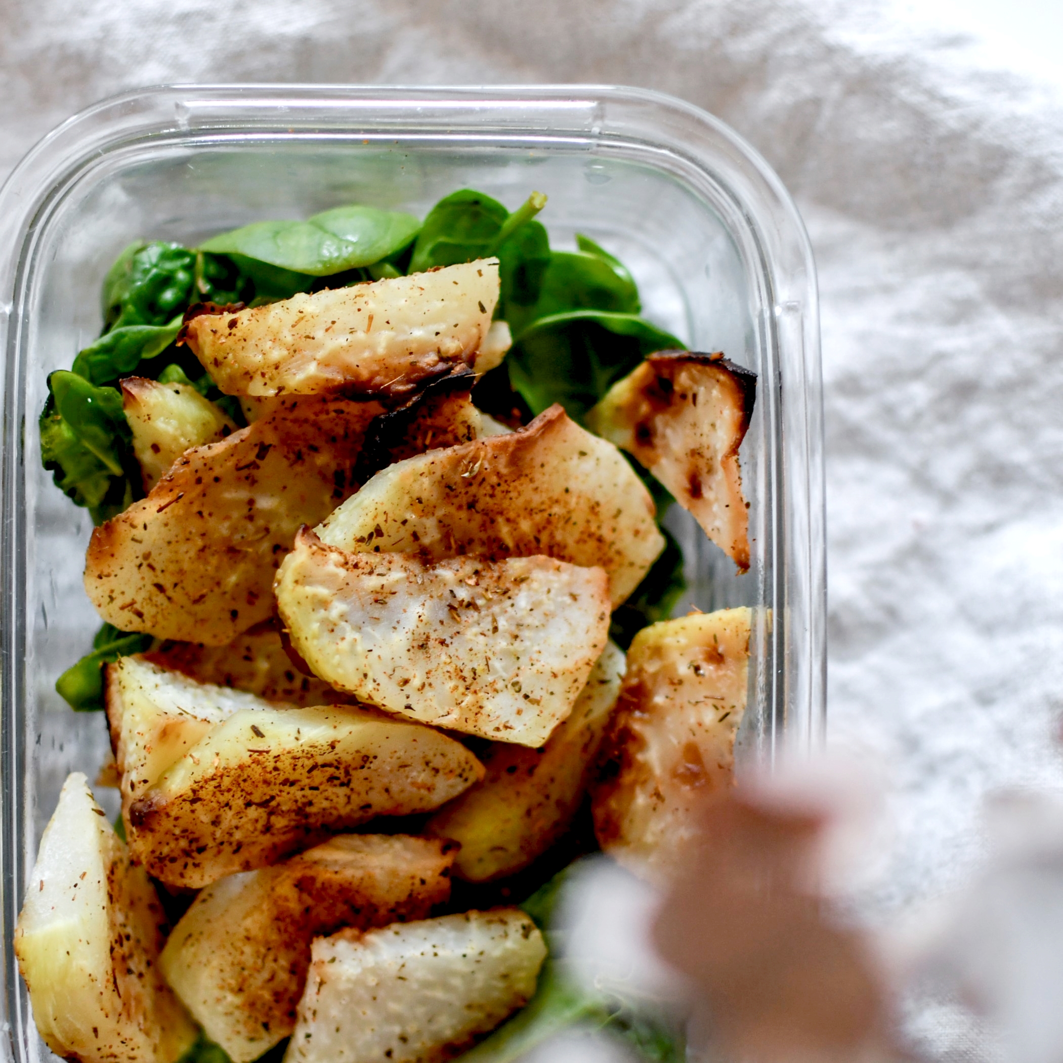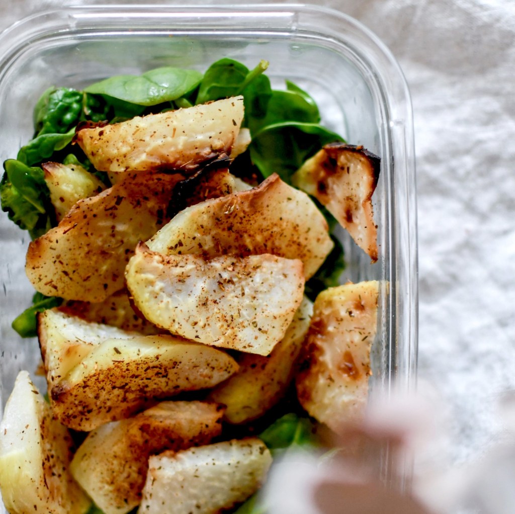 Passion légumes rôtis bonjoooour ! C’est vraiment la meilleure manière de cuisiner des légumes qu’on aime peu ou dont on ne sait pas trop quoi faire. C’est le cas du chou rave qui est souvent difficile à accommoder et peu aimé des enfants (bon moi perso j’adore ça). Au four c’est un délice. On peut y ajouter une petite touche de miel pour la douceur mais ce n’est pas obligatoire.