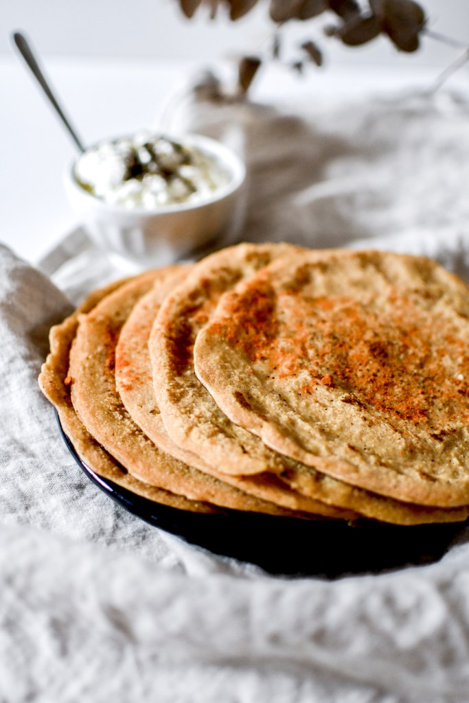 On peut ensuite les garnir de ce que l’on veut, y mettre les épices que l’on veut. Moi je les ai mangées avec du fromage blanc à l’ancienne (celui de la ferme Lindgrube dont je ne peux me passer tellement j’y suis accro et qui propose des yaourt bio dans des pots consignés) et de la purée de potimarron. Etrange, mais le mélange des 3 était délicieux. On peut aussi les garnir de riz et haricots rouges, de purée de légumes ou légumineuses type houmous, de sauce à la tomate, de fromage … de tout en fait ! Bref, vous ne vous en remettrez pas et ne remercierez jamais assez pour cette pépite.