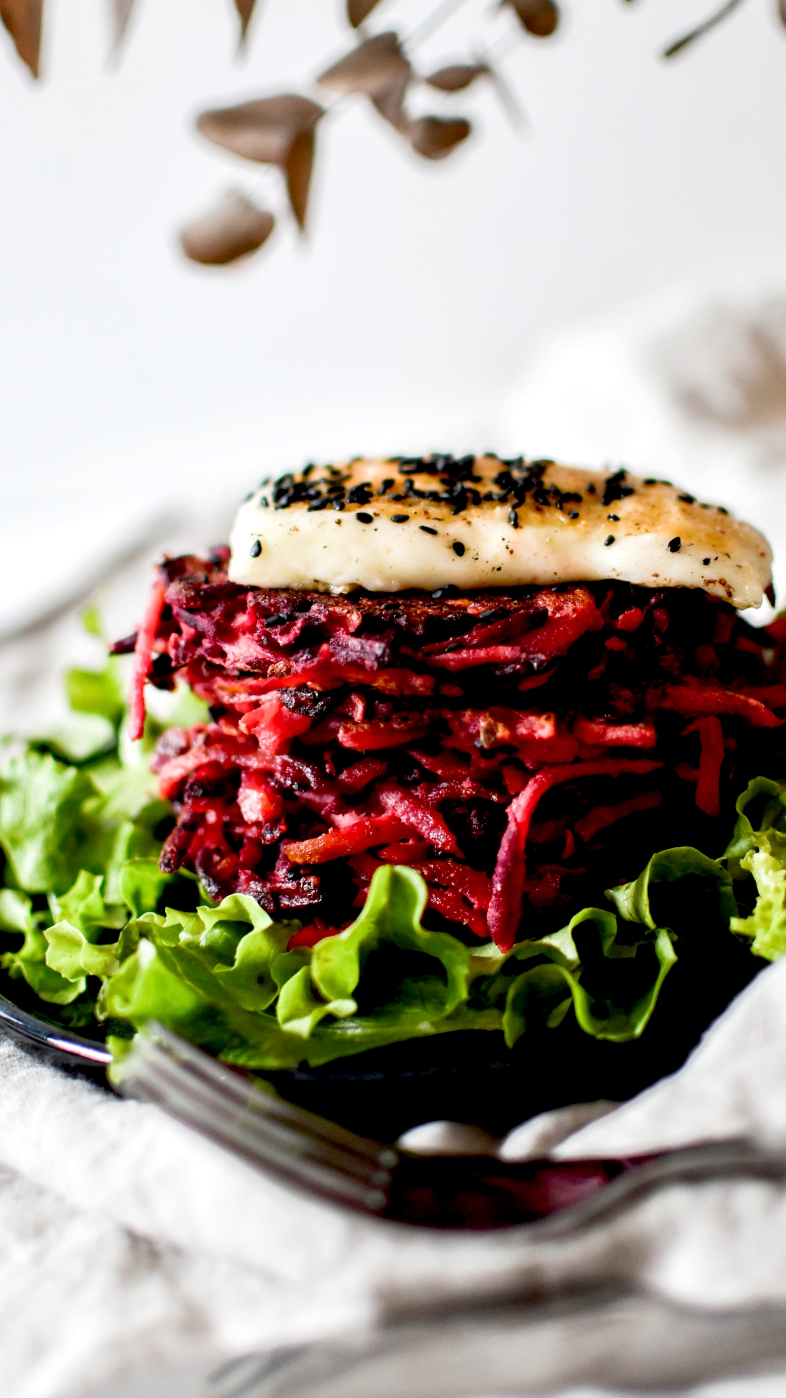 Ces galettes peuvent se manger seules ou en accompagnement d’un autre plat. De mon côté, je les ai agrémentées d’un morceau d’haloumi préalablement toasté à la poêle C’est une tuerie. Et si vous voulez savoir où trouver le meilleur haloumi de la ville, c’est chez Aliomis (pareil pour la feta et les olives … 🤫🤤). Bref. C’est vraiment trop bon et si simple à faire. Vous ne serez pas déçus.