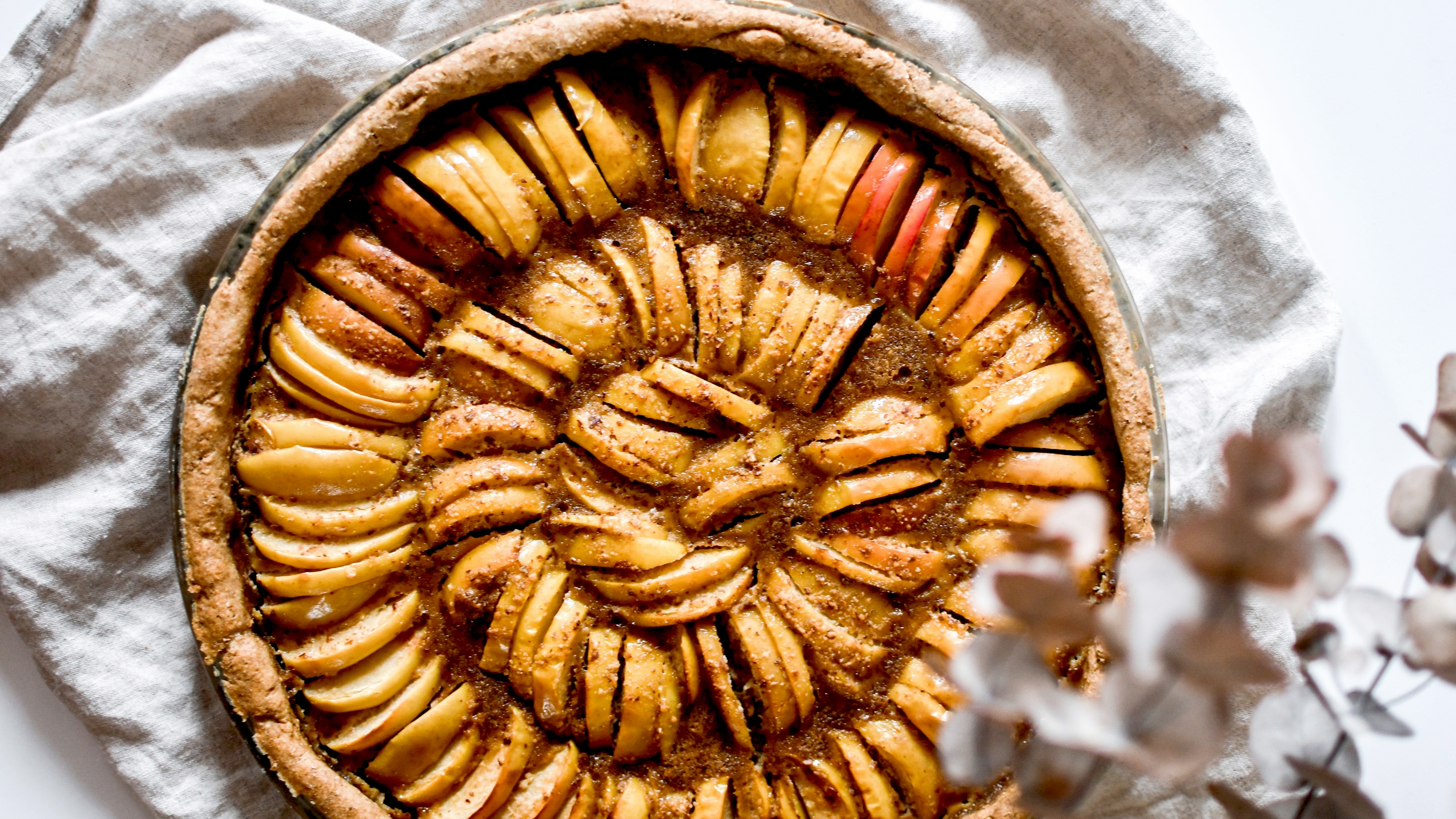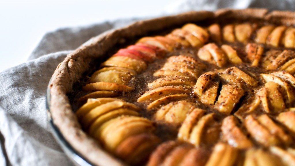 Cette recette, c’est ma recette fétiche de tarte aux pommes : tellement facile. Sans lactose et avec un indice glycémique bas grâce au sucre de coco, elle n’en est pas moins gourmande et généreuse grâce aux amandes qui offrent de la texture et du goût et surtout grâce à la qualité des pommes (et de leur peau, car oui je la laisse vu qu’elles sont bio et d’Alsace – merci la Nouvelle douane). :)