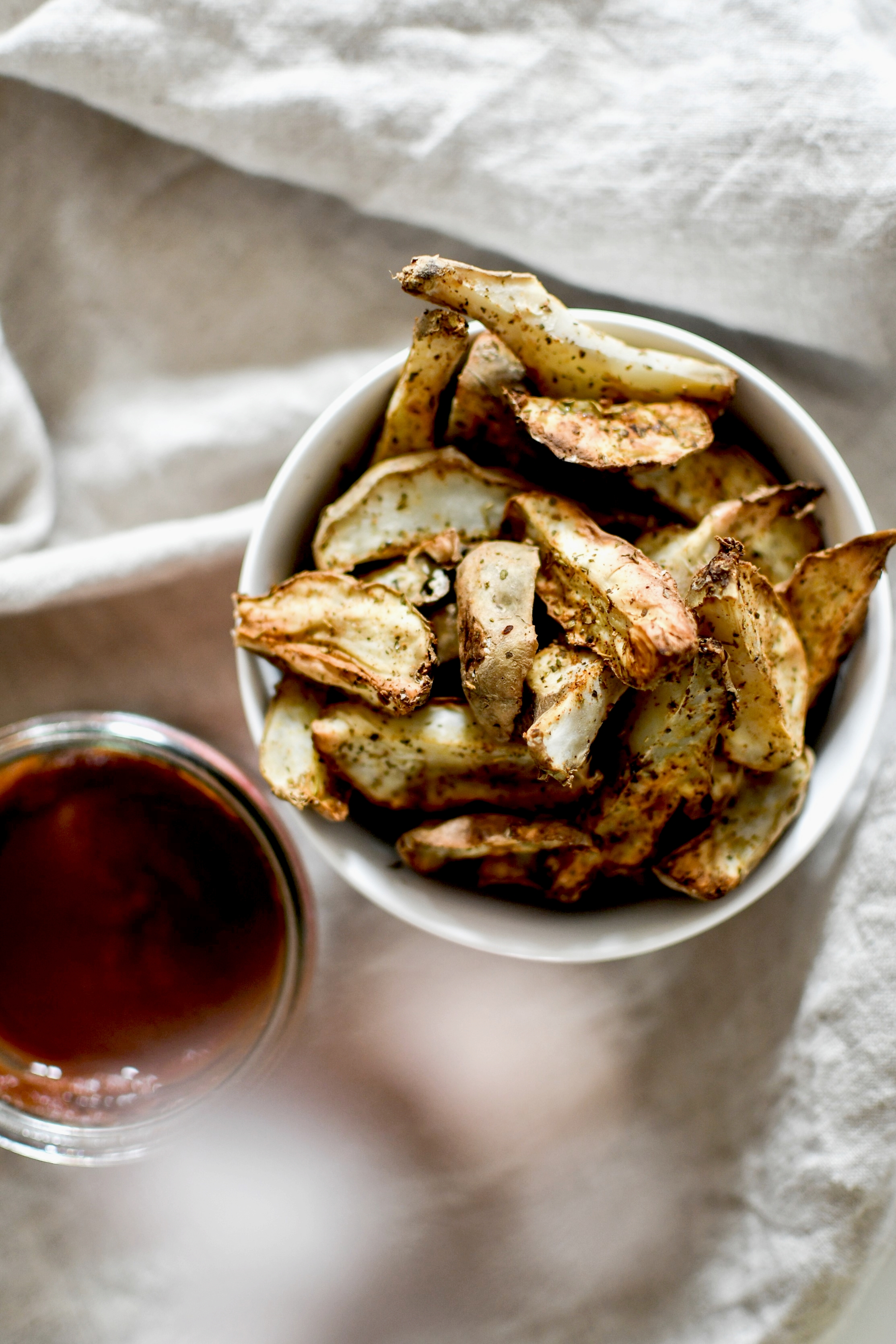 Yeay ! Enfin une recette trop cool à base de topinambours et dont vous allez raffoler. C’est tout simple, même principe que pour les potatoes et pas besoin de les éplucher s’ils sont bio (sauf si la peau vous parait vraiment épaisse, ça dépend des variétés).