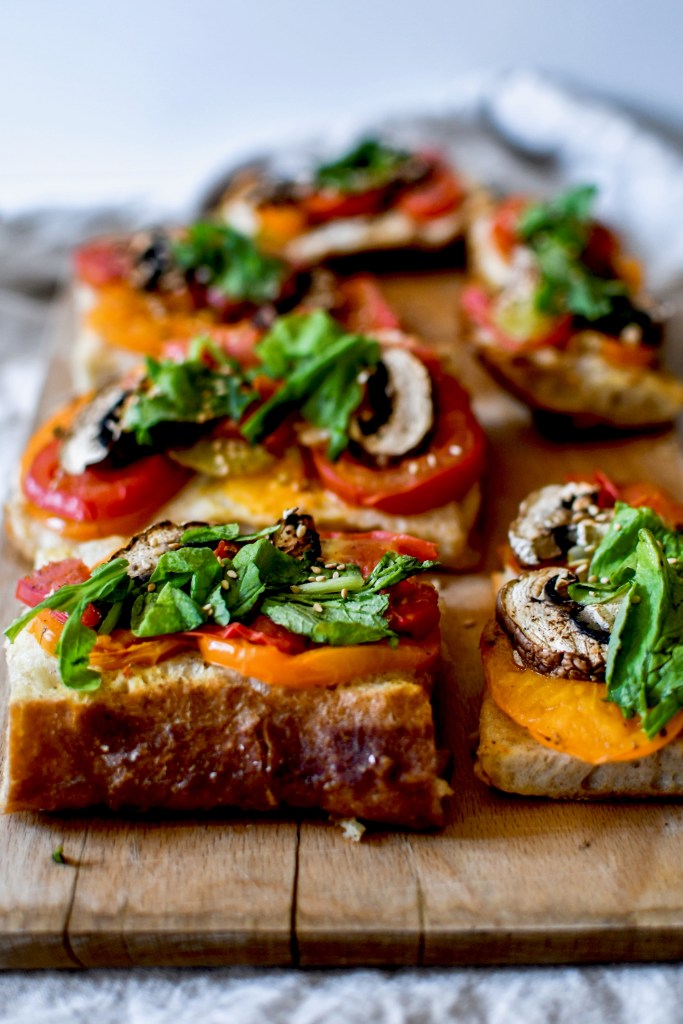 Une baguette trop dure pour être consommée telle quelle ? Ne la jetez surtout pas ! Faites en du pain perdu (déjà beaucoup d’idées par ici) ou, comme ici, des tartines gourmandes et idéales pour un petit lunch d’été.