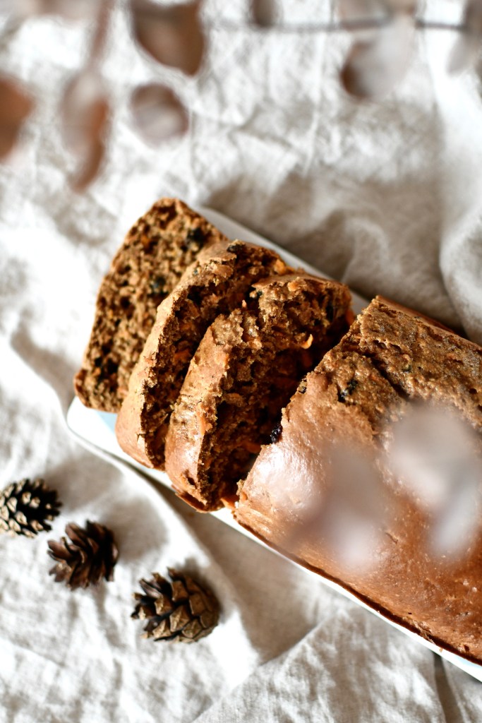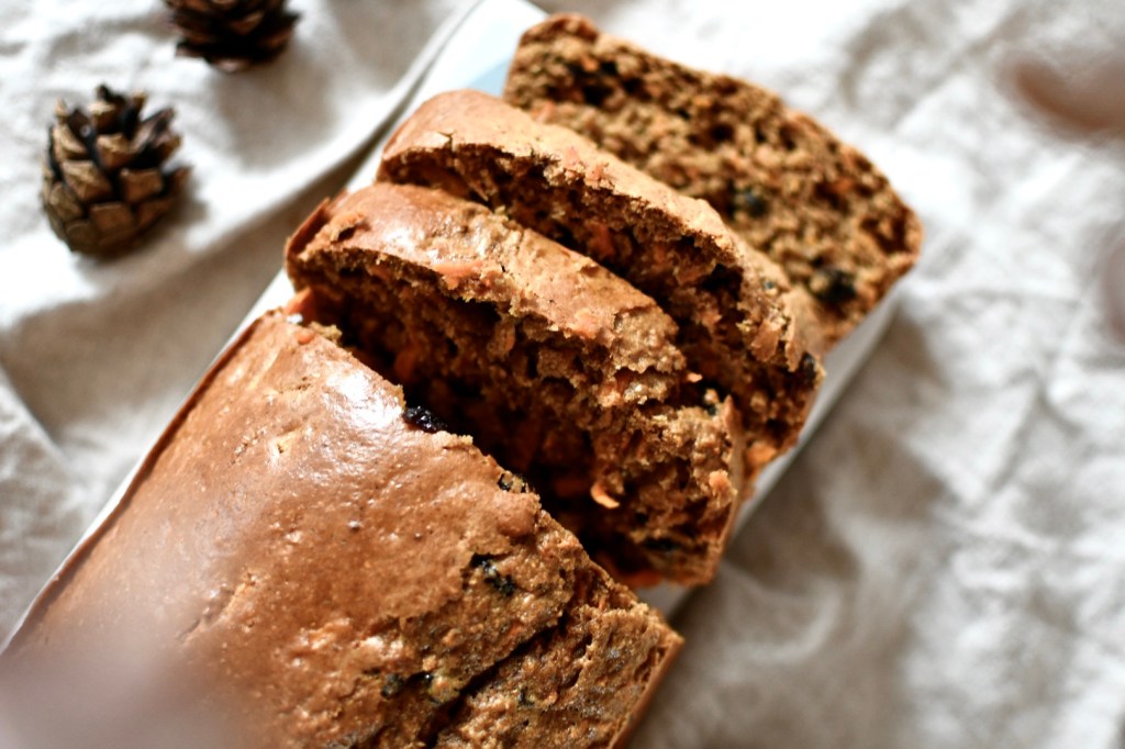 Toutes les saveurs et les couleurs qu’on adore en automne réunies dans un cake moelleux et sans complexe. Il contient (un peu) de sucre complet, de la purée de noisettes (que l’on peut remplacer par de la purée d’amande) mais aussi beaucoup d’épices : gingembre, cannelle … ce qui lui apporte la petite touche automnale. L’association carottes-cranberries est en accord avec la saison, la douceur des premières étant rehaussée par la petite acidité des secondes. Équilibre des saveurs au top. Sans lactose, il est moelleux à cœur et se mange à toute heure.