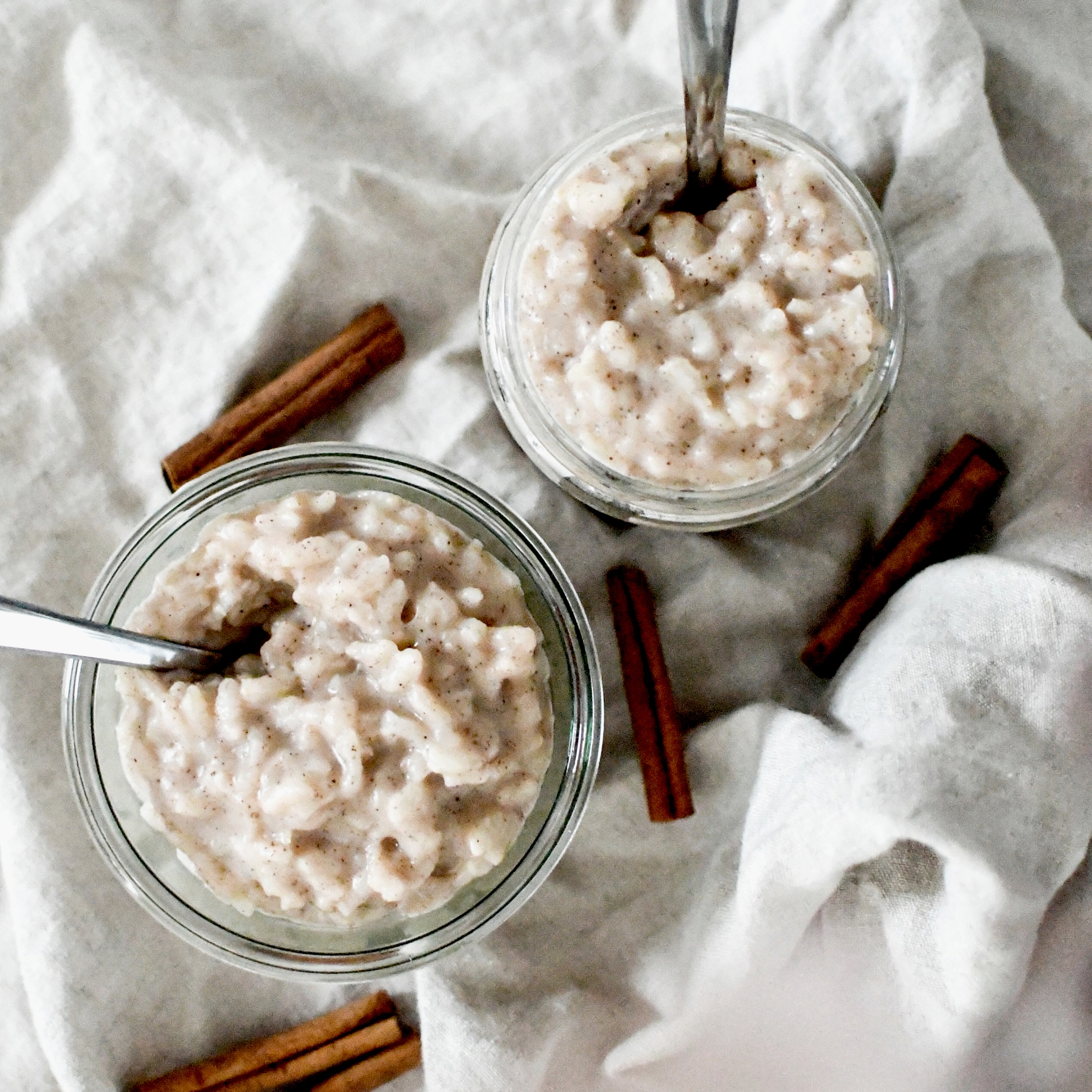 Je me suis inspirée de plusieurs recettes dénichées sur Pinterest, notamment celle de Cyril Lignac pour cette version à la cannelle, mais l’ai réalisée en version végane, avec du lait végétal. C’est moins gras, plus digeste mais tout aussi crémeux.