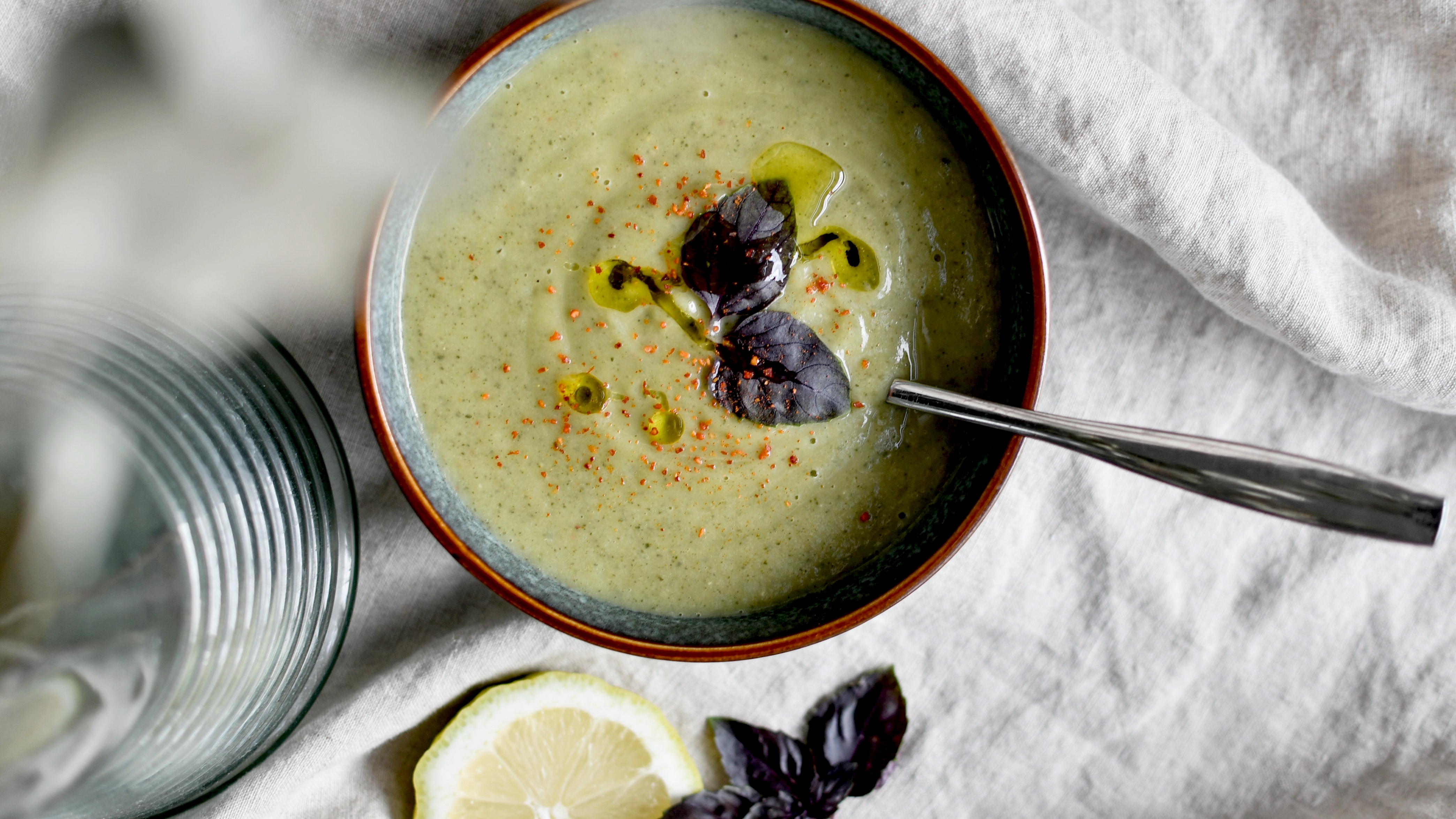 Dans une grande casserole, faire revenir l’échalote avec un peu d’huile d’olive. Ajouter les courgettes coupées en rondelles et le basilic. Saupoudrer de piment d’Espelette. Verser de l’eau aux 3/4 de la hauteur des courgettes (vous en rajouterez si besoin en fin de cuisson) et intégrer le bouillon.
