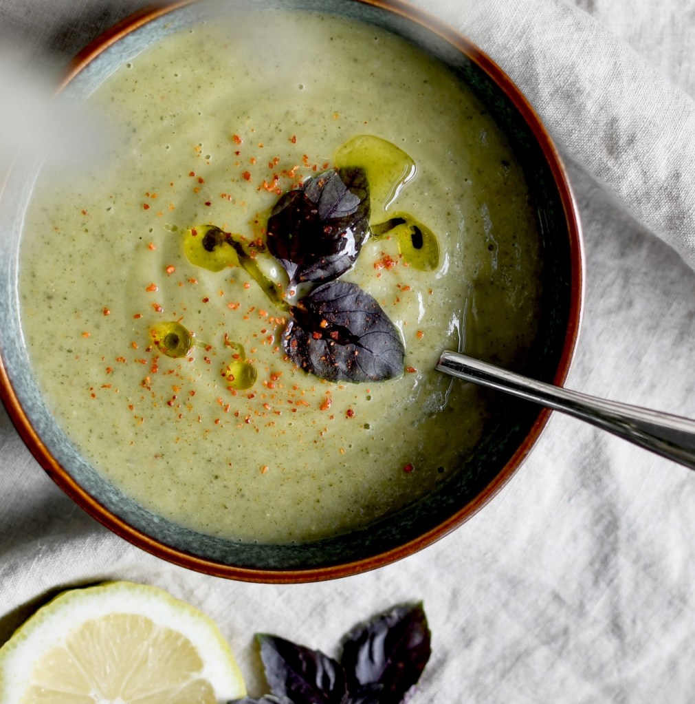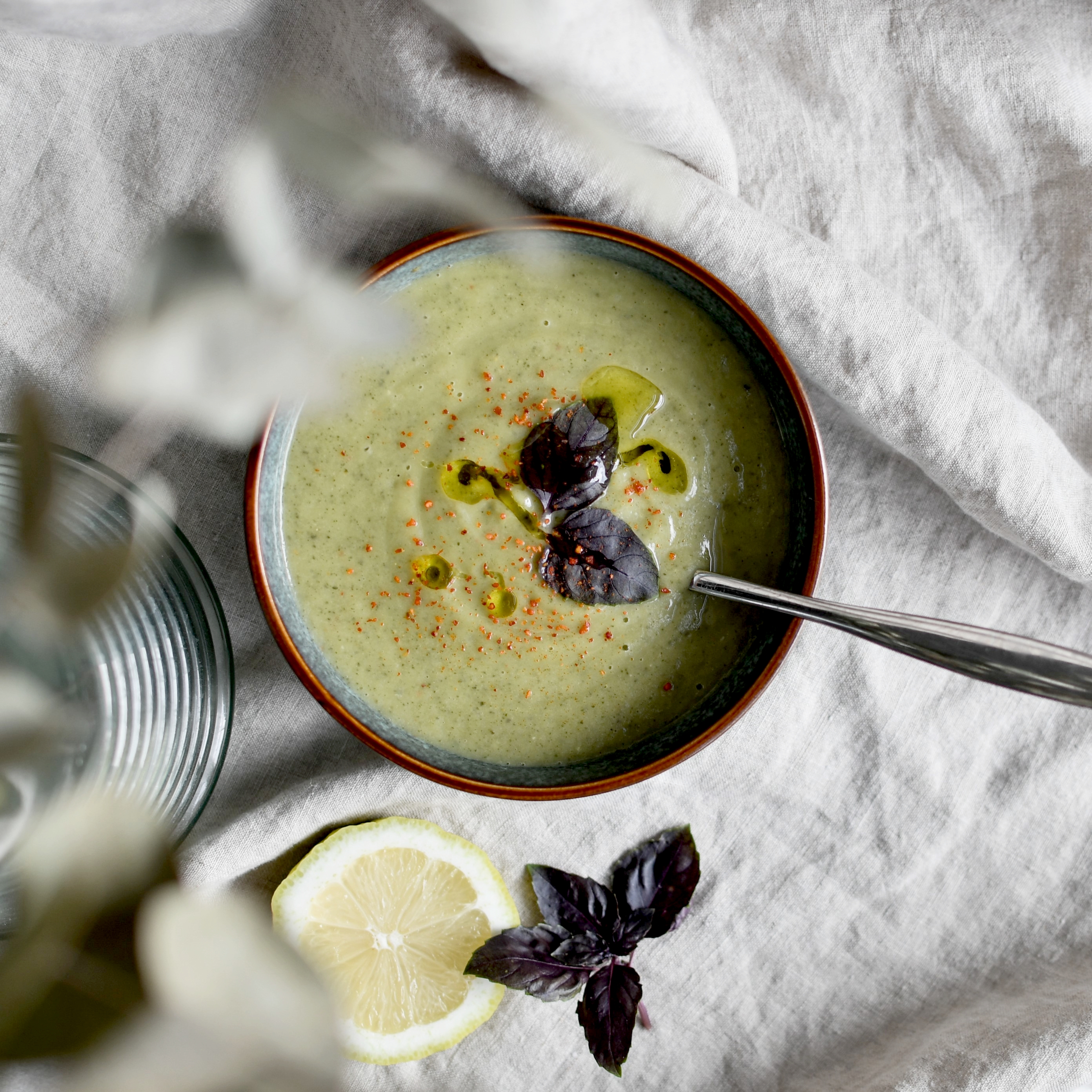 Cette recette de gaspacho avec cette fois le basilic violet du balcon est un condonsé de tout ce que j’aime. Douceur en bouche, fraîcheur et petite touche de peps, c’est un bol de bonheur.