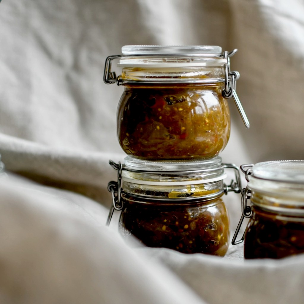 J’y ai volontairement mis pas mal d’épices pour réhausser un peu son goût et en faire un vrai allié cuisine. On peut évidemment se passer du piment pour éviter que le tout ne soit trop relevé (personnelement je trouve l’effet très agréable et amusant, mais il faut bien choisir son piment et être capable de le doser correctement). En tout cas le résultat est vraiment chouette, la texture, les saveurs. Je suis bien contente de n’avoir pas laissé ces tomtes vertes sur leurs pieds cette année.
