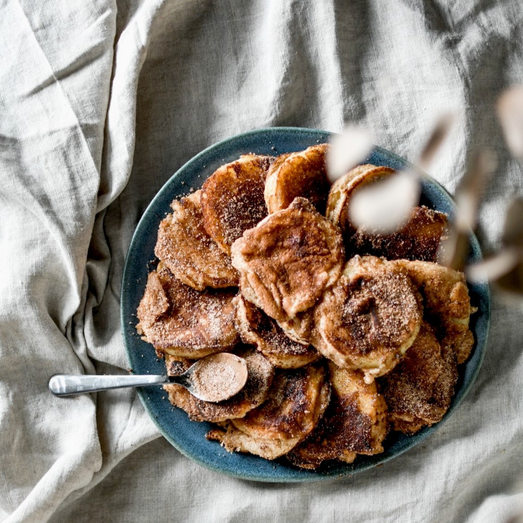 Les Apfekiechle sont de petites douceurs aux pommes, à mi-chemin entre les crêpes et les beignets, frits dans du beurre et recouverts de sucre-cannelle. Un vrai régal pour toustes les amoureu.se.s de pommes comme moi. C’est d’ailleurs une recette que je vous avais déjà proposé aux tout début de mon blog. Mais bon, je dois reconnaître que je me suis pas mal améliorée en cuisine depuis, et que cette version est bien meilleure.
