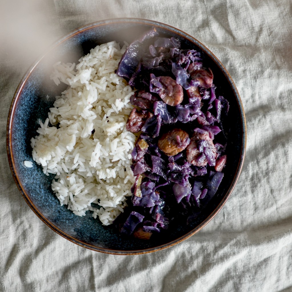 C’était sans doute une des recettes de notre grand-mère que je préférais. Son odeur dans la cuisine, sa douceur en bouche, ce fondant. L’association chou rouge-marrons est inimitable, tellement juste et équilibrée. Une des meilleures inventions des siècles passés.