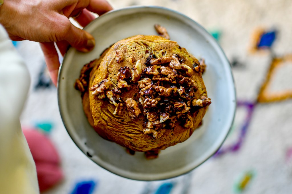 Servir avec les pancakes, de la crème de marron ou du sirop d’érable pour un effet automnal incroyable.
