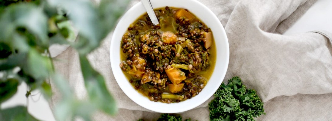 Soupe à l’ancienne – Chou kale, Butternut, lentilles & moutarde